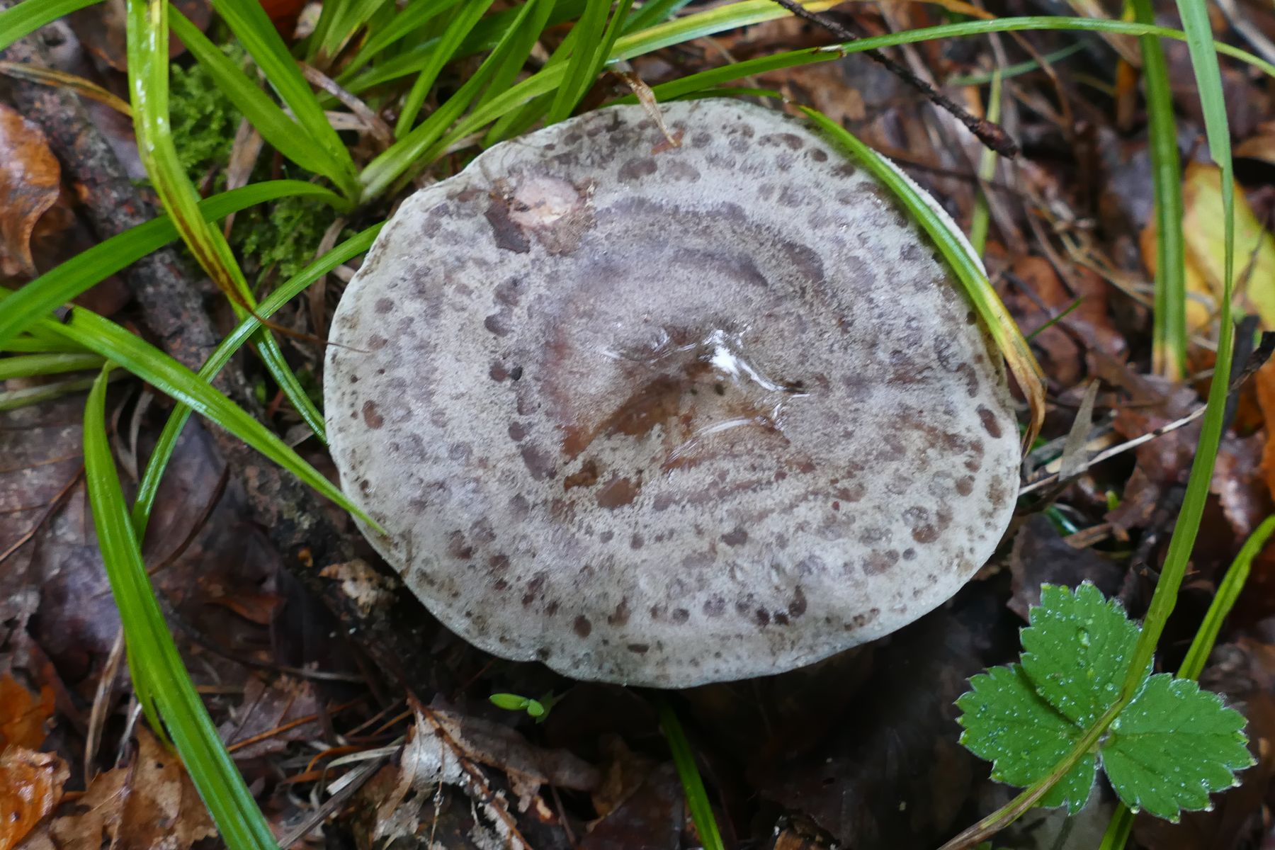 Ein regelrechter Massenpilz in einer Rückegasse war ein grünlicher Milchling mit braunen Punkten auf dem Hut.