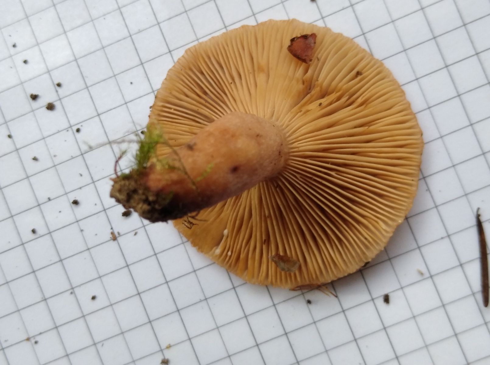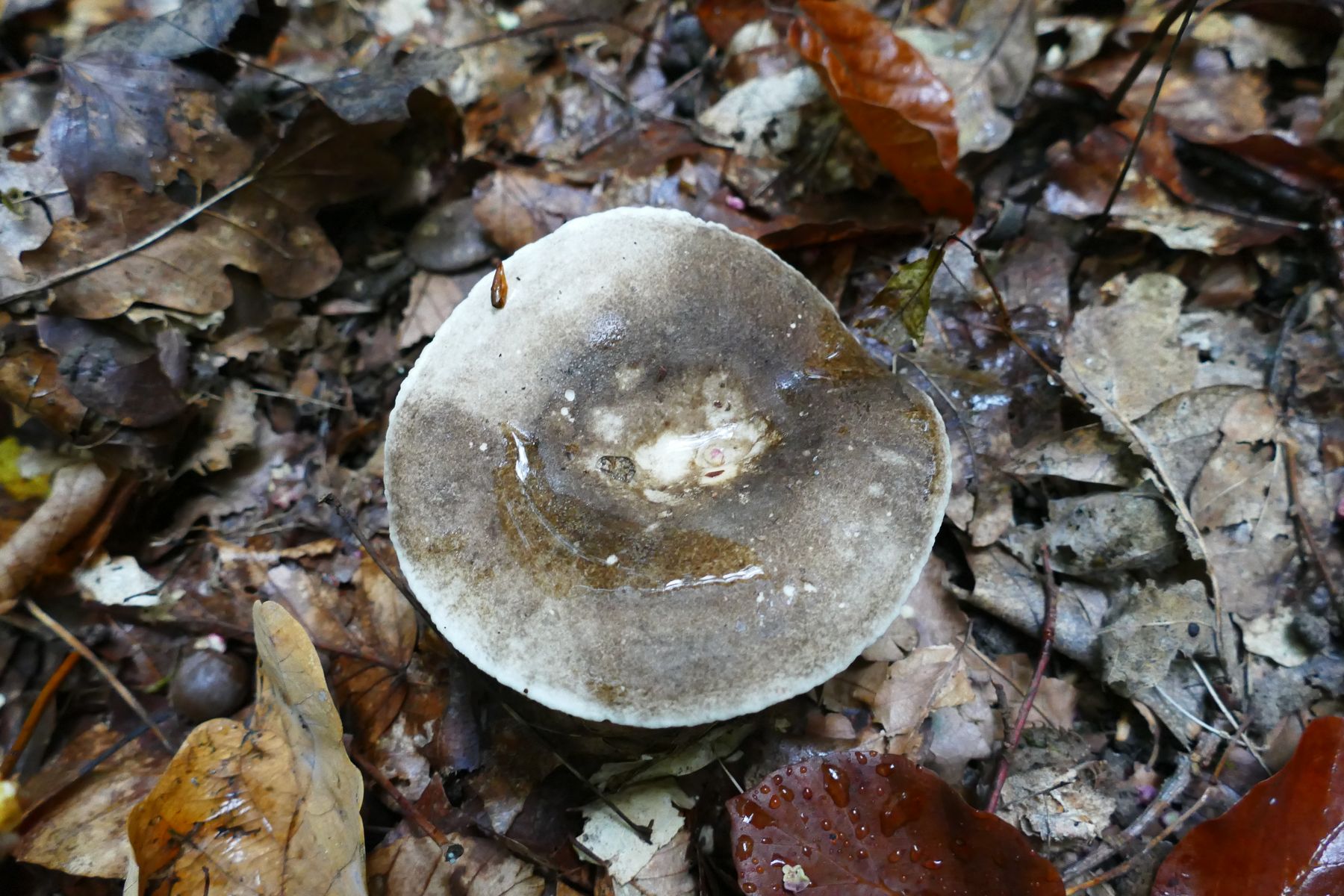 Ein anderer, in direkter Nähe stehender oliv-grünlicher Milchling ohne Flecken unterscheidet sich vom ersten Fund durch einige Merkmale: