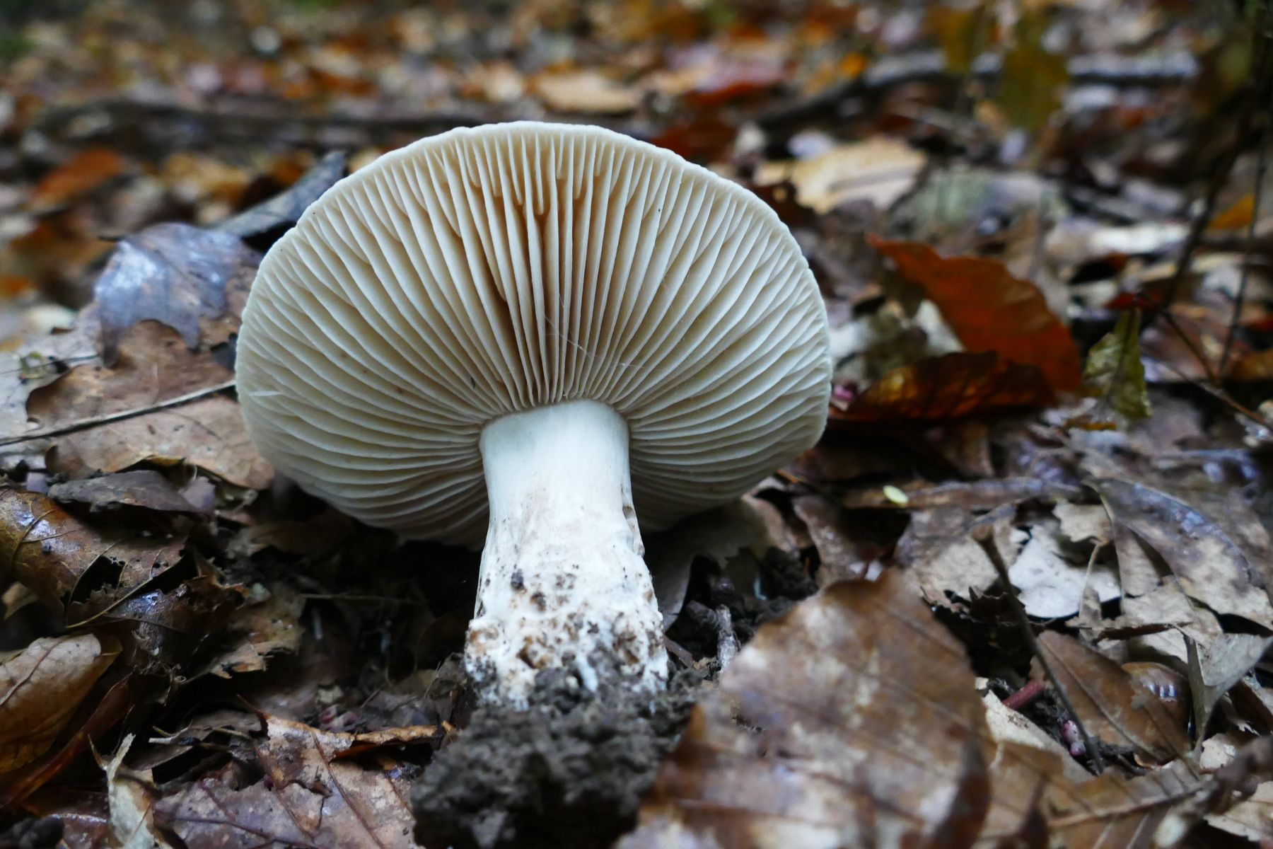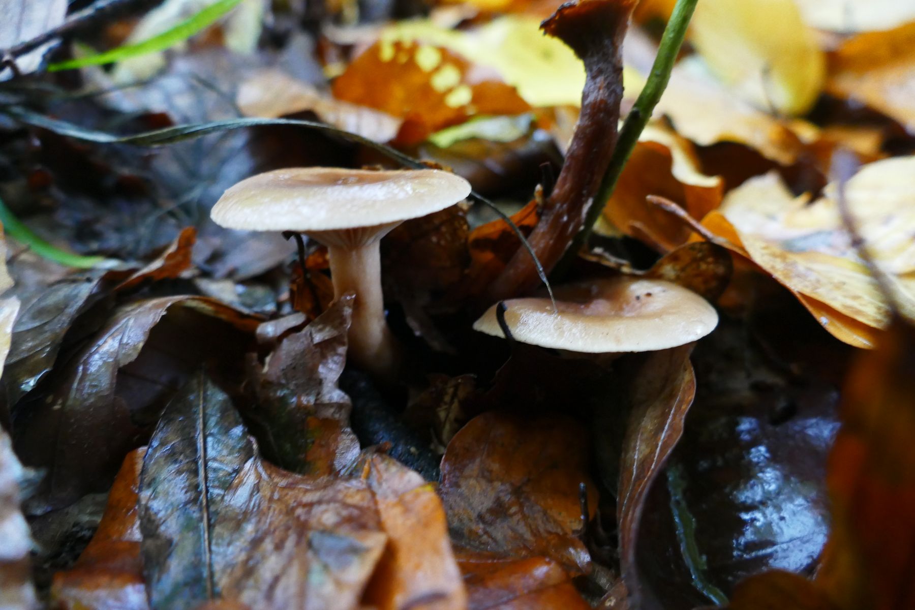Bild D1 Pilz am Fundort im Rotbuchenlaub