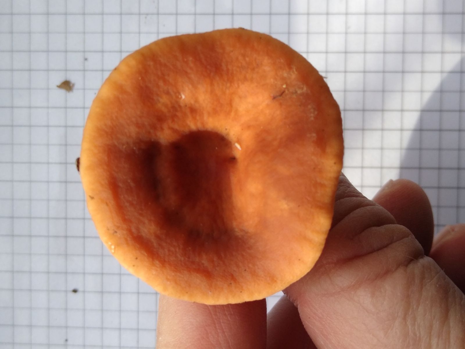 Hut trichterförmig mit schwacher radialer Zonierung und trocken.
