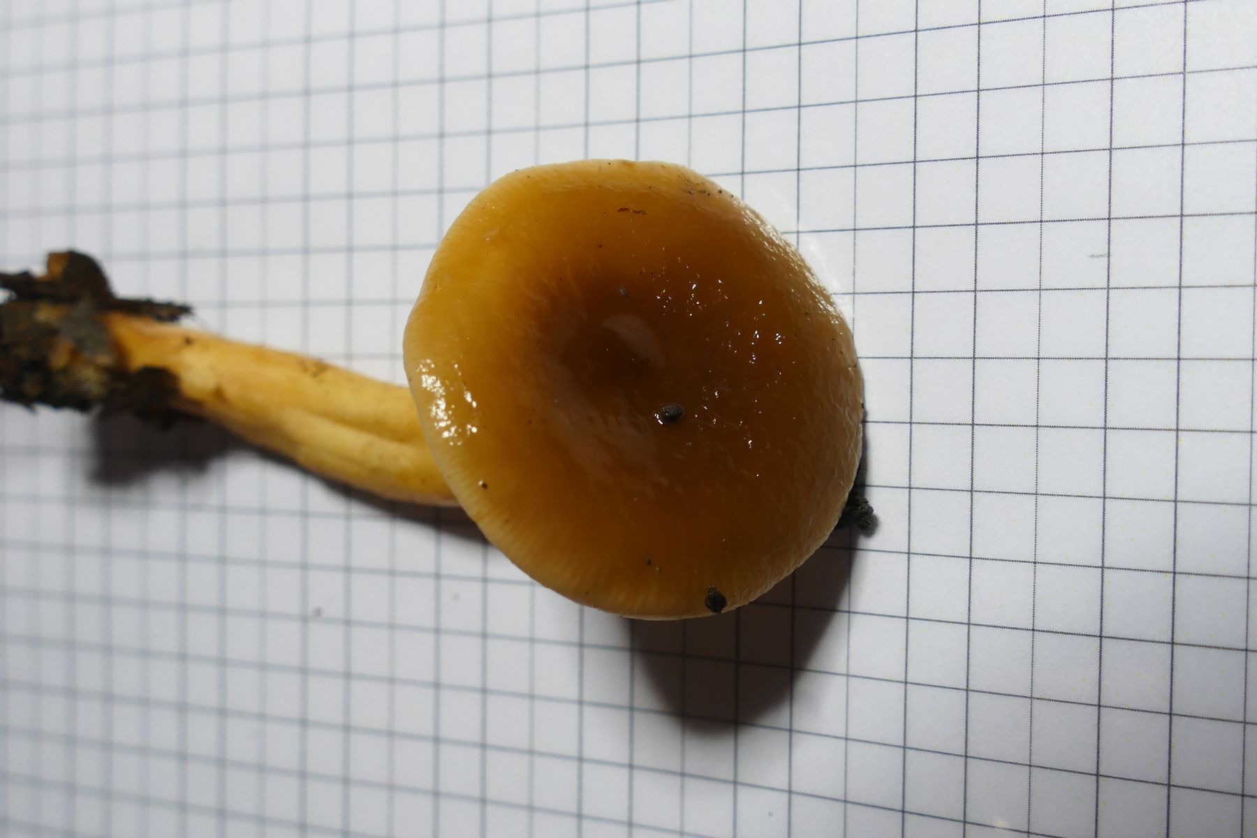 Der Lamellenansatz ist anders als bei L. blennius, eher adnat (?), nicht herablaufend.