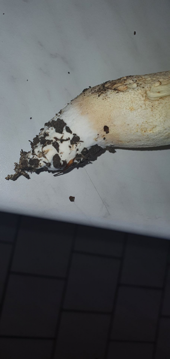 Beim Merkmal 'Netz' waren wir auch unsicher. Dieses Foto ist später entstanden als die anderen, wir hatten den Pilz schon ein Weilchen mit uns rumgetragen, direkt beim Fund war es meiner Erinnerung farblich nicht so abgesetzt. Ist es ein Netz oder sind es nur angetrocknete Ränder von der allgemeinen etwas rauen Stielstruktur?