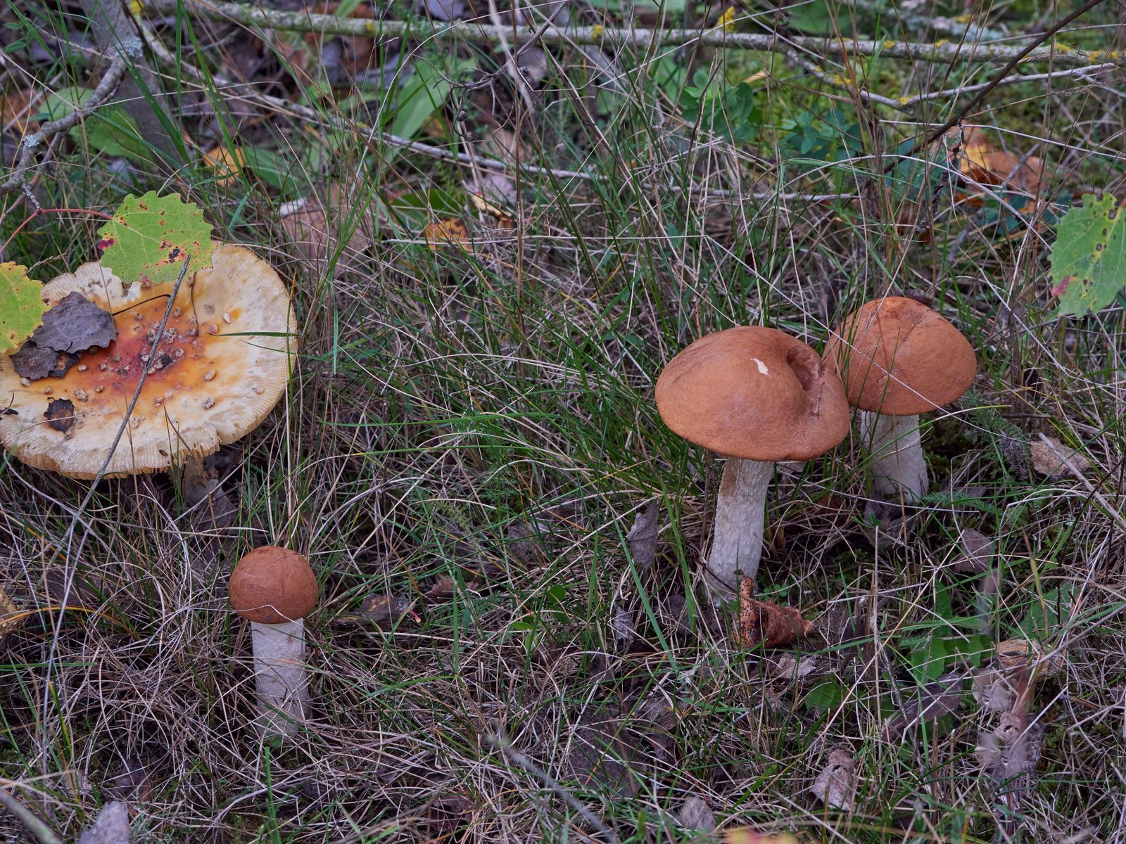 Auf dem darunter befindlichen Foto könnte der liegende Pilz natürlich ein gewöhnlicher Birkenpilz sein.