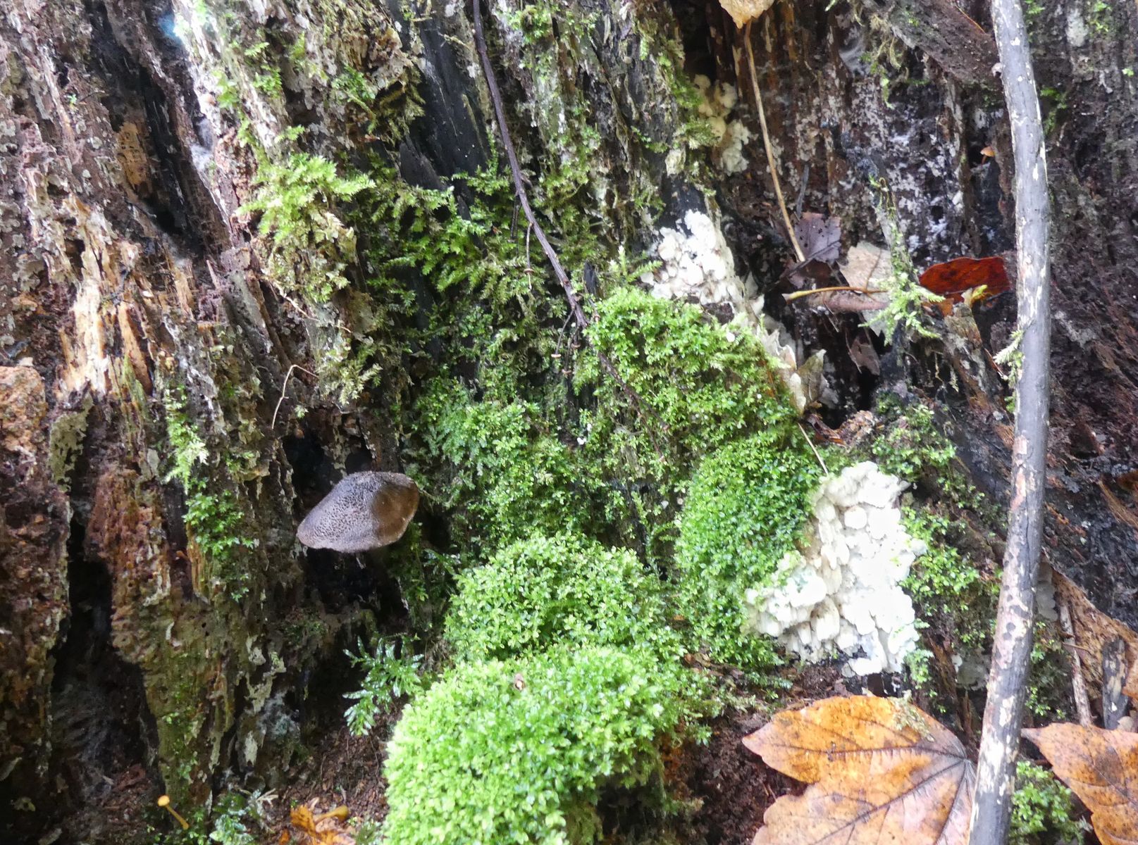 Der morsche Baumstamm, vermutlich Laub, war an mehreren Stellen von diesem Pilz bedeckt. Sorry für das schlechte Foto