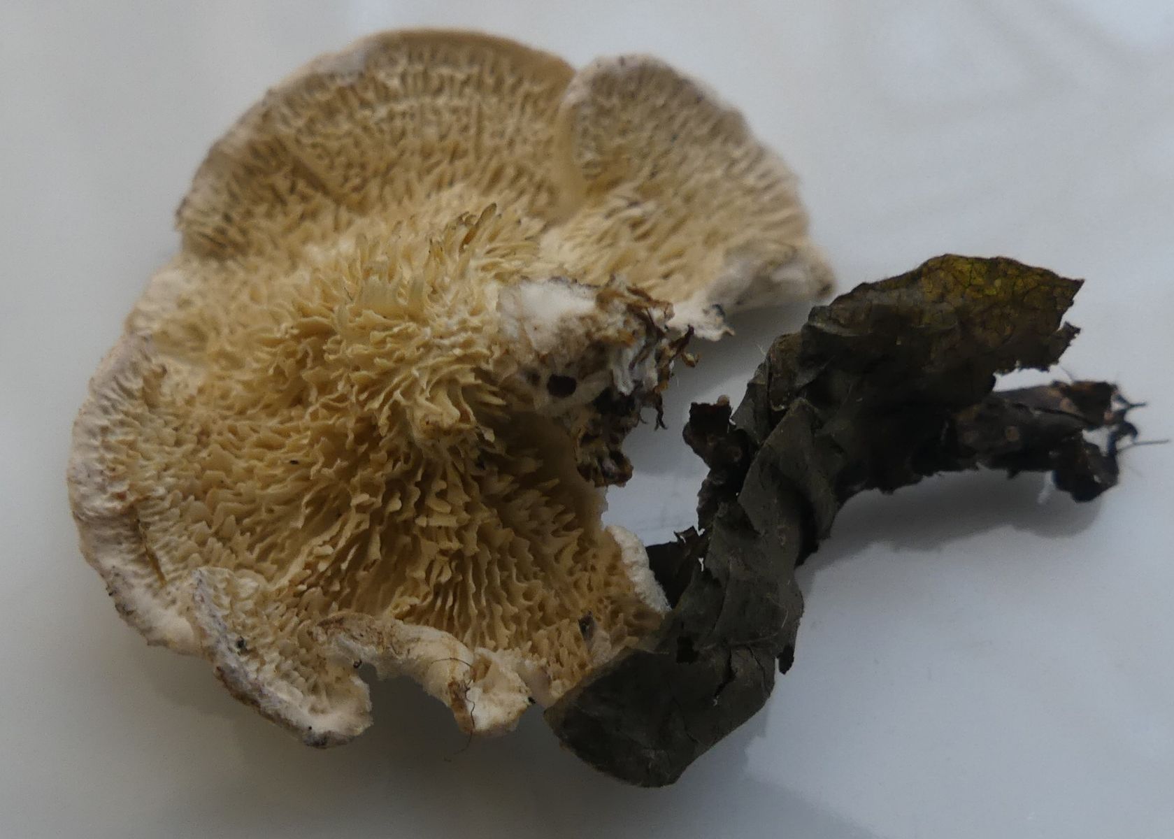Irpex lacteus kann allerhand sonderbare Fruchtkörperformen annehmen, und gerade an so dünneren Ästchen finde ich die Art häufig mit deutlicher Hütchenbildung. So fast gestielt - pileat, wie auf einem deiner Bilder zu sehen, und mit sonderbar entfernt stehenden, langgestreckten Zähnen ist es allerdings tatsächlich ungewöhnlich. Wenn Frank den aber in die Hände bekommt, dann kannst du dich darauf verlassen, daß der Name nachher auch wirklich stimmt.