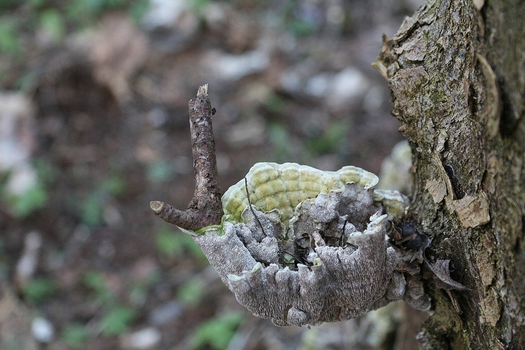 Irpex lacteus wäre eine Option, allerdings habe ich da solche "gestielten" Fruchtkörper, wie im zweiten Bild von Maria noch nicht gefunden. Interessant wäre, ob die Fruchtkörper eher weich oder sehr zäh waren.