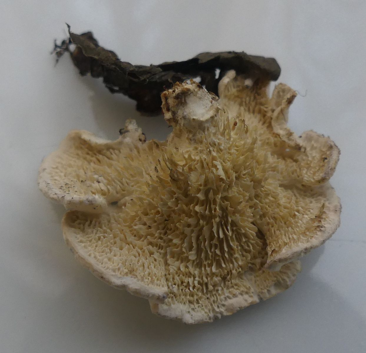 Irpex lacteus kann allerhand sonderbare Fruchtkörperformen annehmen, und gerade an so dünneren Ästchen finde ich die Art häufig mit deutlicher Hütchenbildung. So fast gestielt - pileat, wie auf einem deiner Bilder zu sehen, und mit sonderbar entfernt stehenden, langgestreckten Zähnen ist es allerdings tatsächlich ungewöhnlich. Wenn Frank den aber in die Hände bekommt, dann kannst du dich darauf verlassen, daß der Name nachher auch wirklich stimmt.