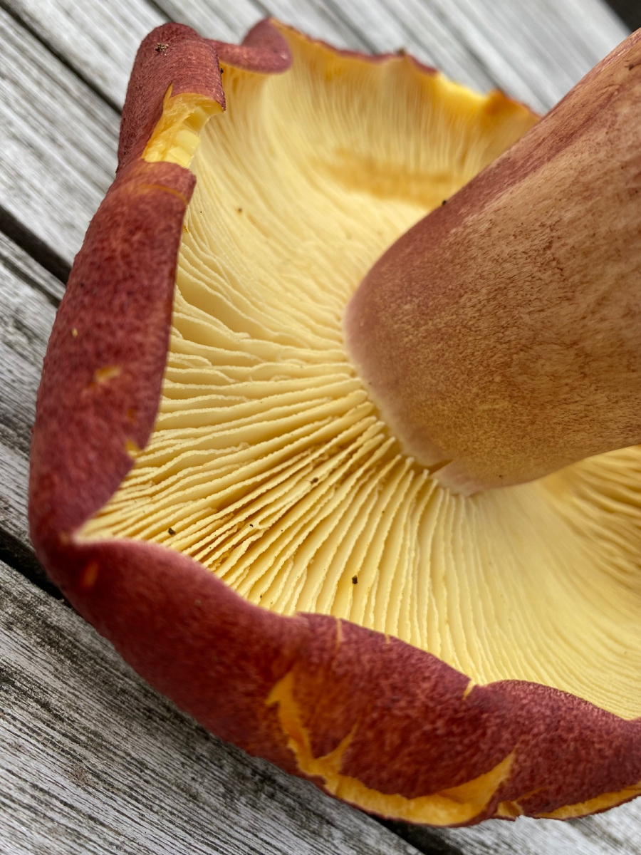 Allerdings hat mich Nummer 2) echt hinters Licht geführt, weil der Stiel wohl durchs Alter brüchig und spröde wurde und das sonstige Erscheinungsbild (trotz gelber Grundfarbe) irgendwie stimmig war für mich. Manche Täublinge können im Alter schon gelblich erscheinen?