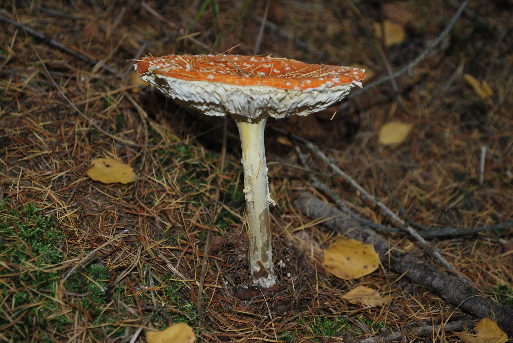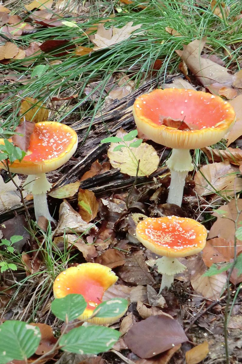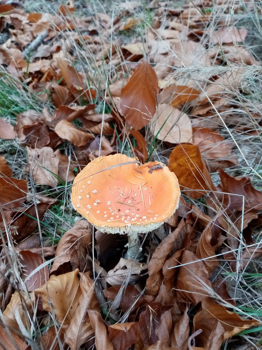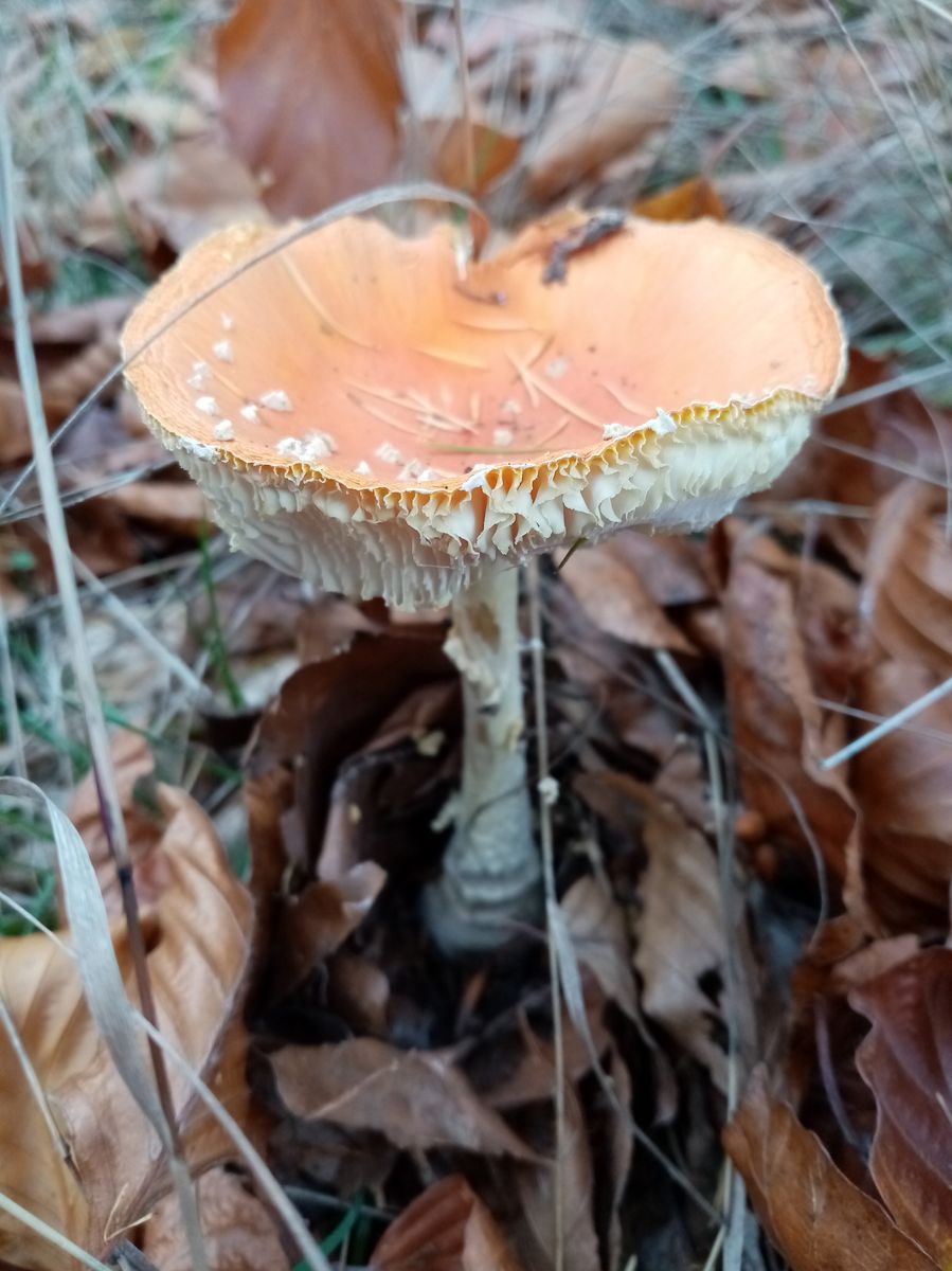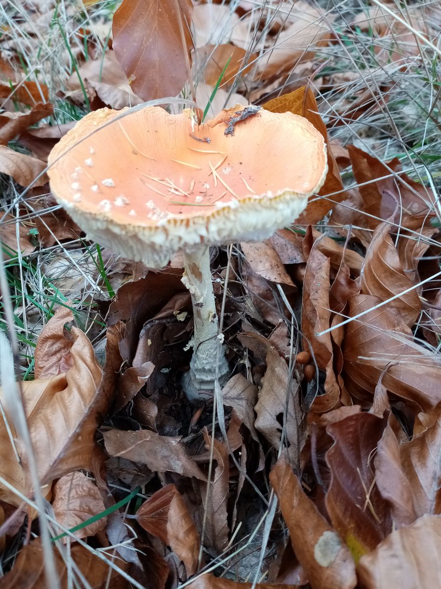 3 cm Stielumfang entspricht etwas unter 1 cm Durchmesser. Nicht dass ich Ahnung von diesen Varietäten hätte. Aber das wäre als Max. für Fliegenpilze doch ganz schön zierlich. Ich finde auch gerade massenweise ähnliche, nach orange ausblassende, vergehende Fliegenpilze. Plus Mehlräsling und Pfefferröhrling, btw...