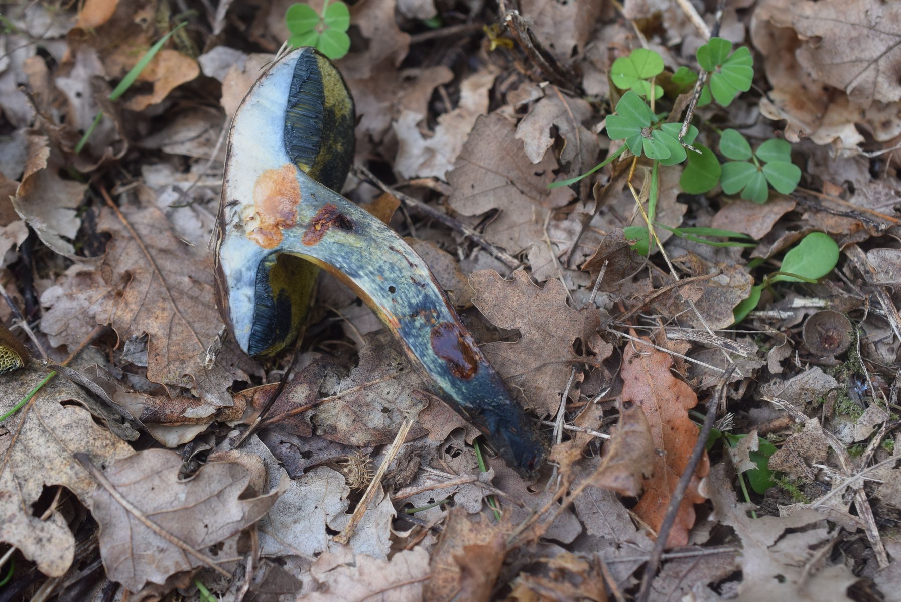 Fundort Mediterranraum Kroatien . Bäume in nähe nur Laubbäume , junge Steineiche , kein Wald , nur ein paar junge Steineiche zerstreut . Kein besonderes Geruch , also na ja , nur angenehm . Es war nur 1 Exemplar , aber in nähe es war sehr viele Hortiboletus bubalinus