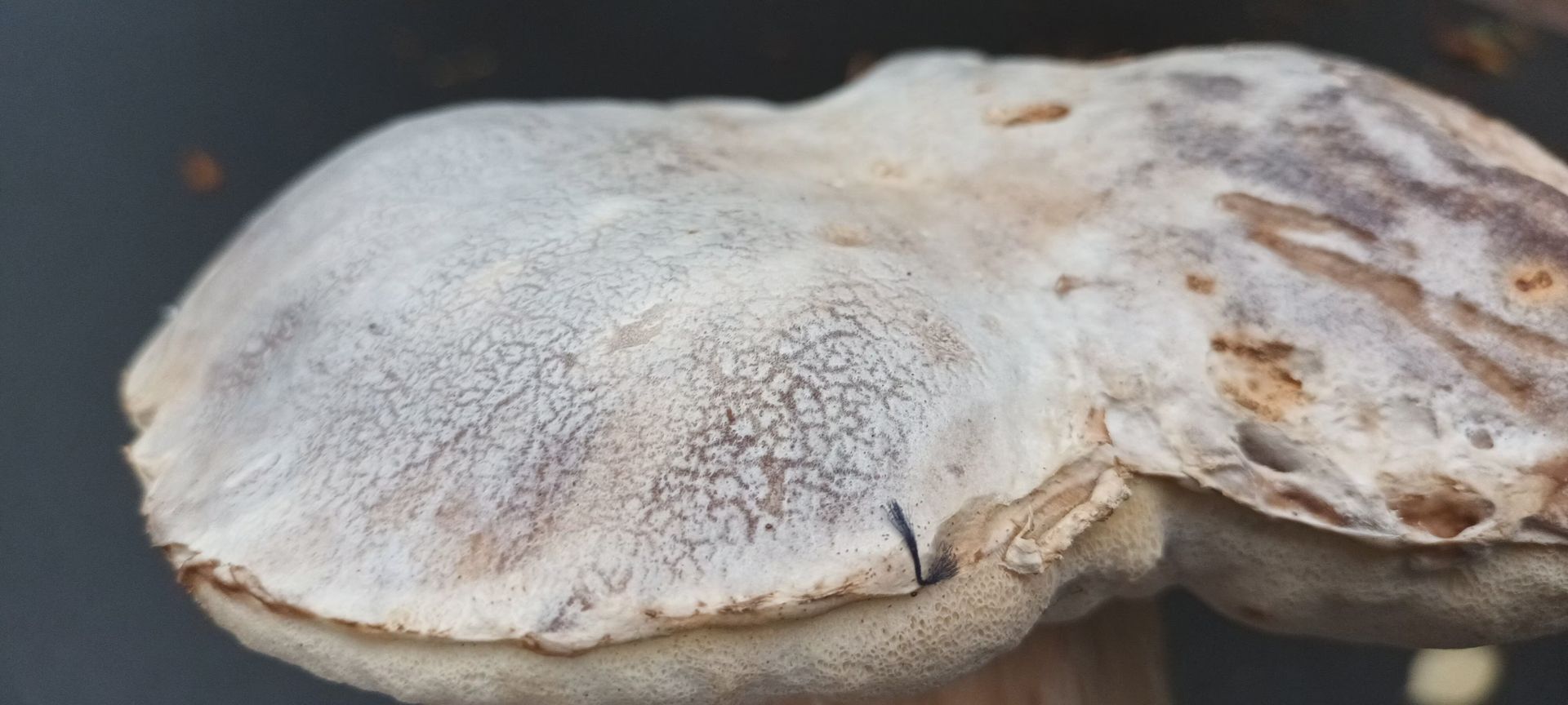 hab gestern einen stattlichen Steinpilz unter einer Eiche gefunden. Allerdings hatte dieser einen seltsamen Ueberzug auf dem Hut. Dachte zuerst an einen Schimmelpilz,