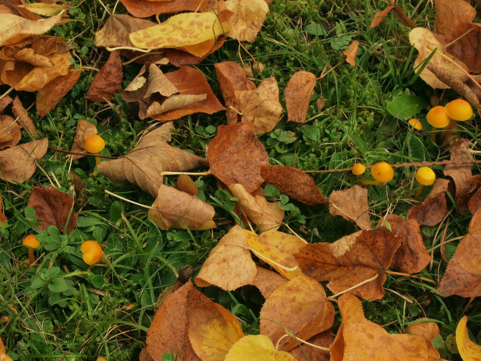 Gebrechlicher Saftling (Hygrocybe ceracea) nach der Laubbeseitgung
