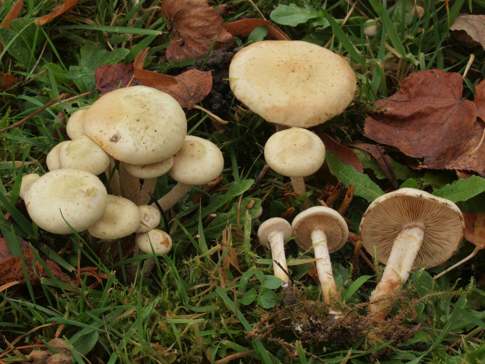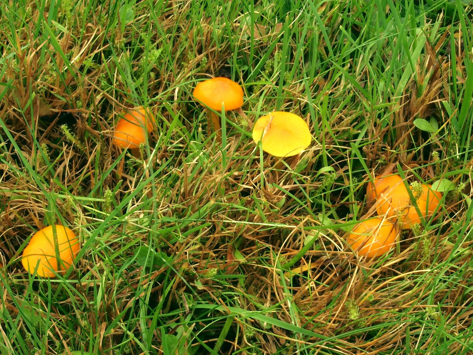 einen derartigen Standort muss man natürlich im Auge behalten. Ich hatte vieles wieder mit Laub abgedeckt, aber dort wo der Wind mir einen Strich durch die Rechnung gemacht hatte, sah es schleht aus. Die Papageien waren "gerupft", H. glutinipes und die Keulchen ziemlich angetrocknet, aber in höherem Gras und unter Laub sah es noch ganz passabel aus. Papageiensaftlinge z. T. noch fast kugekig, wenn auch nicht mehr tief grün, auch andere Arten sahen noch ganz gut aus und es gab noch neue Arten.