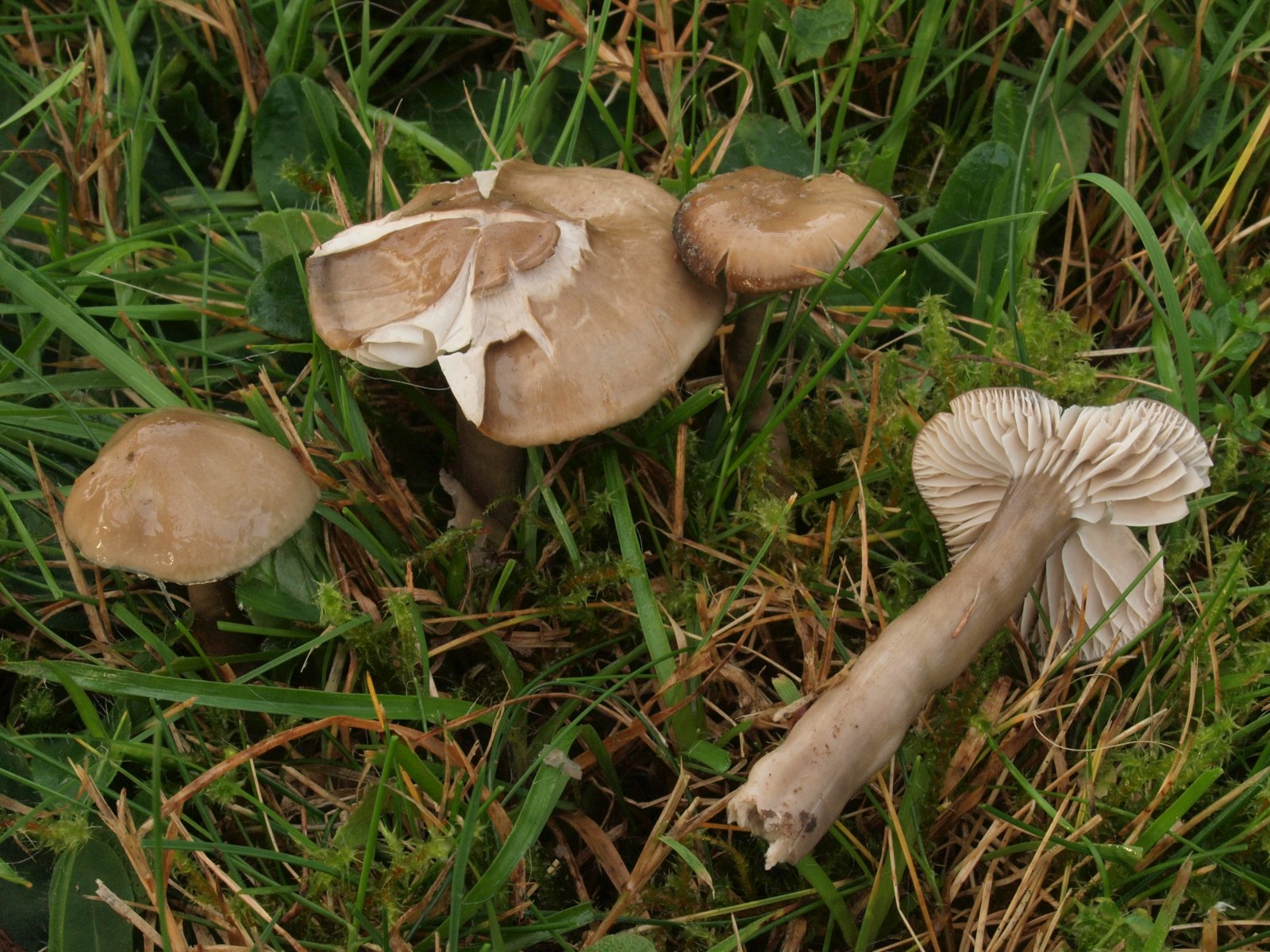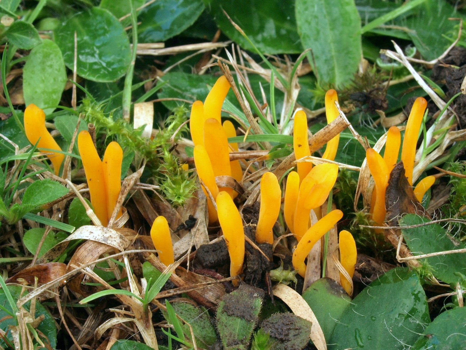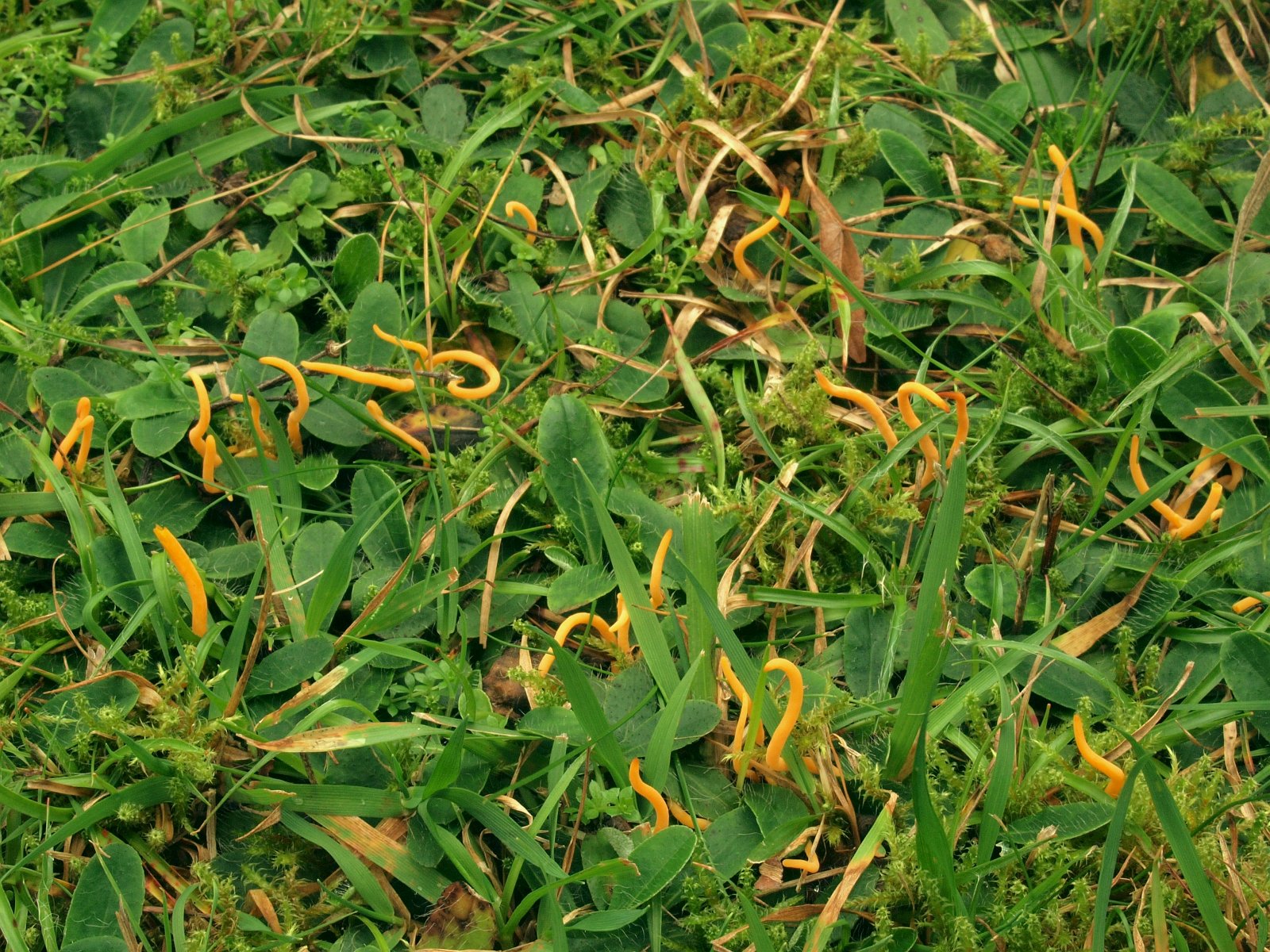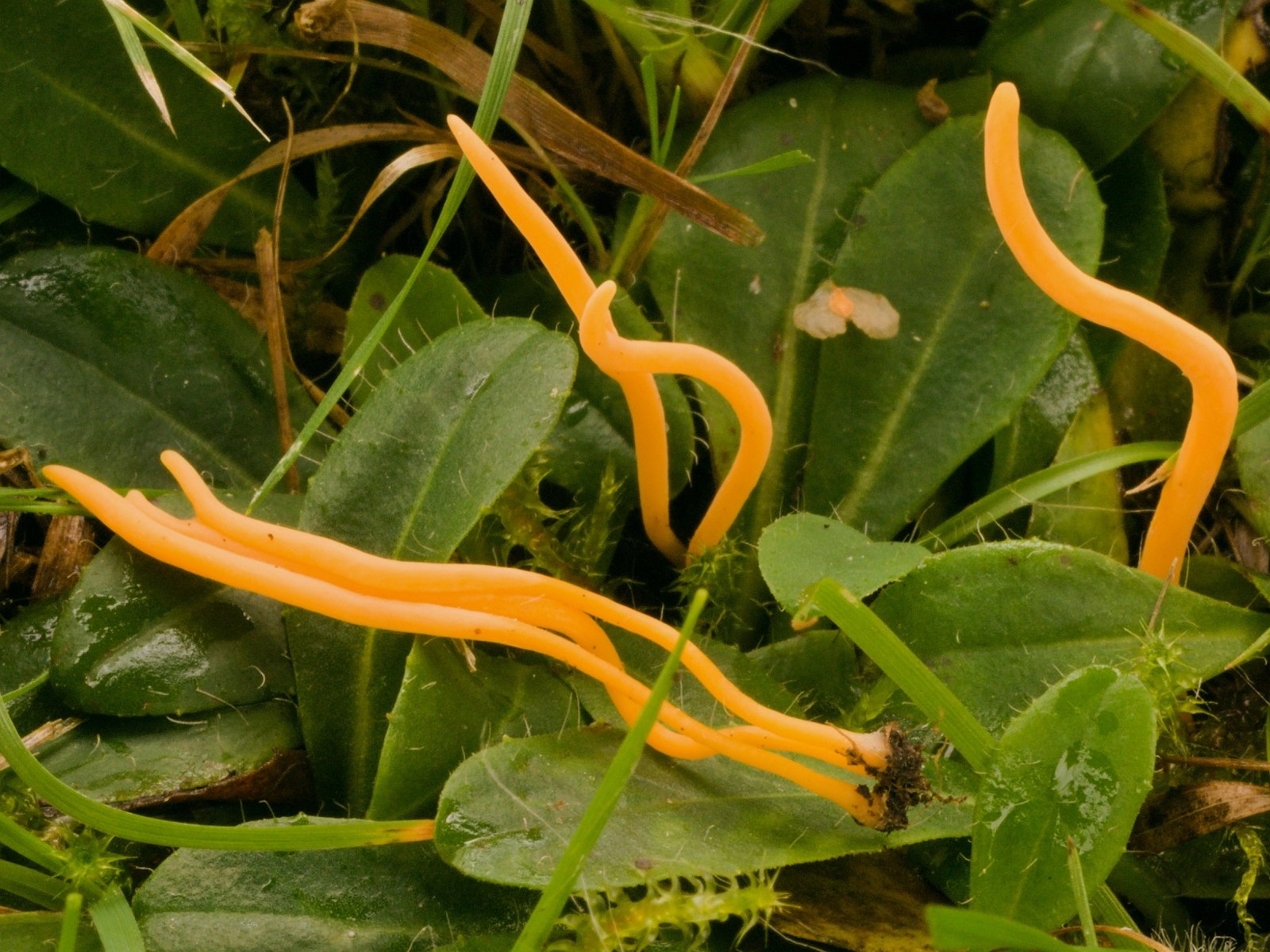 Besonders habe ich mich über einen weiteren Saftling i. w. S. gefreut. Zu sehen war nur das linke Exemplar und unter einem Blatt fand ich ein Dreiergrüpchen.