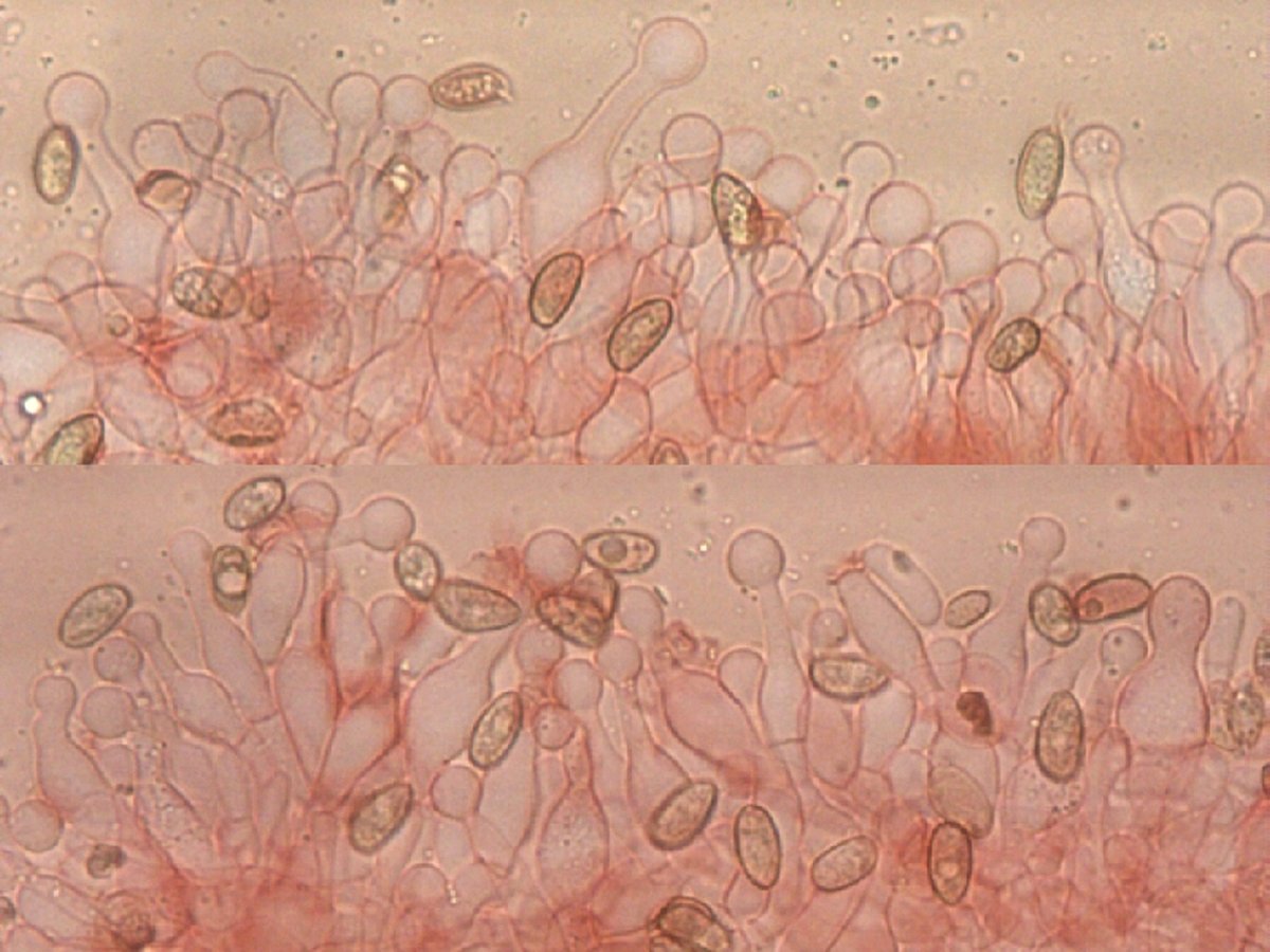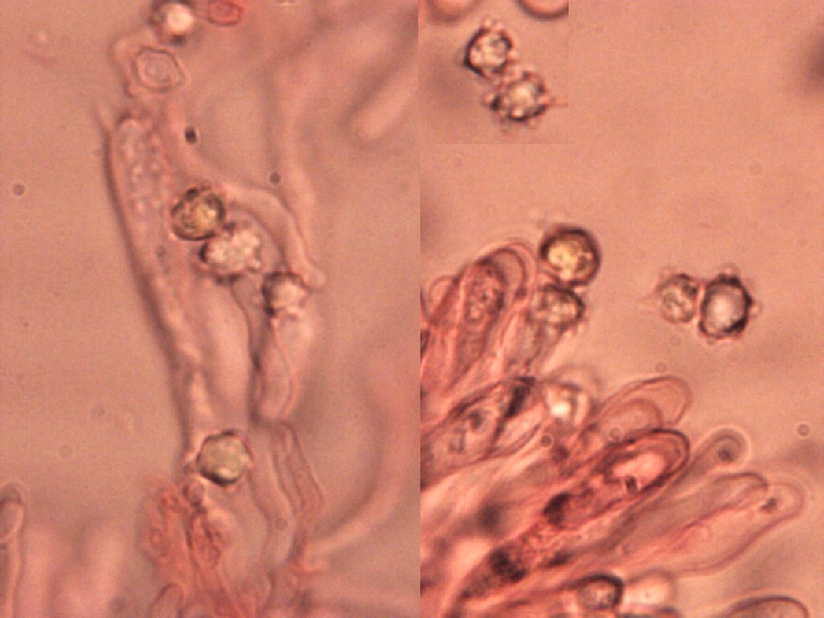 Von den zahlreichen Häublingen nahm ich nur ein Exemplar zu Überprüfung mit. Große Sporen, keine Schnallen und kegelpinförmige Zystiden. Ein Dankbares Objekt zur Bestimmung