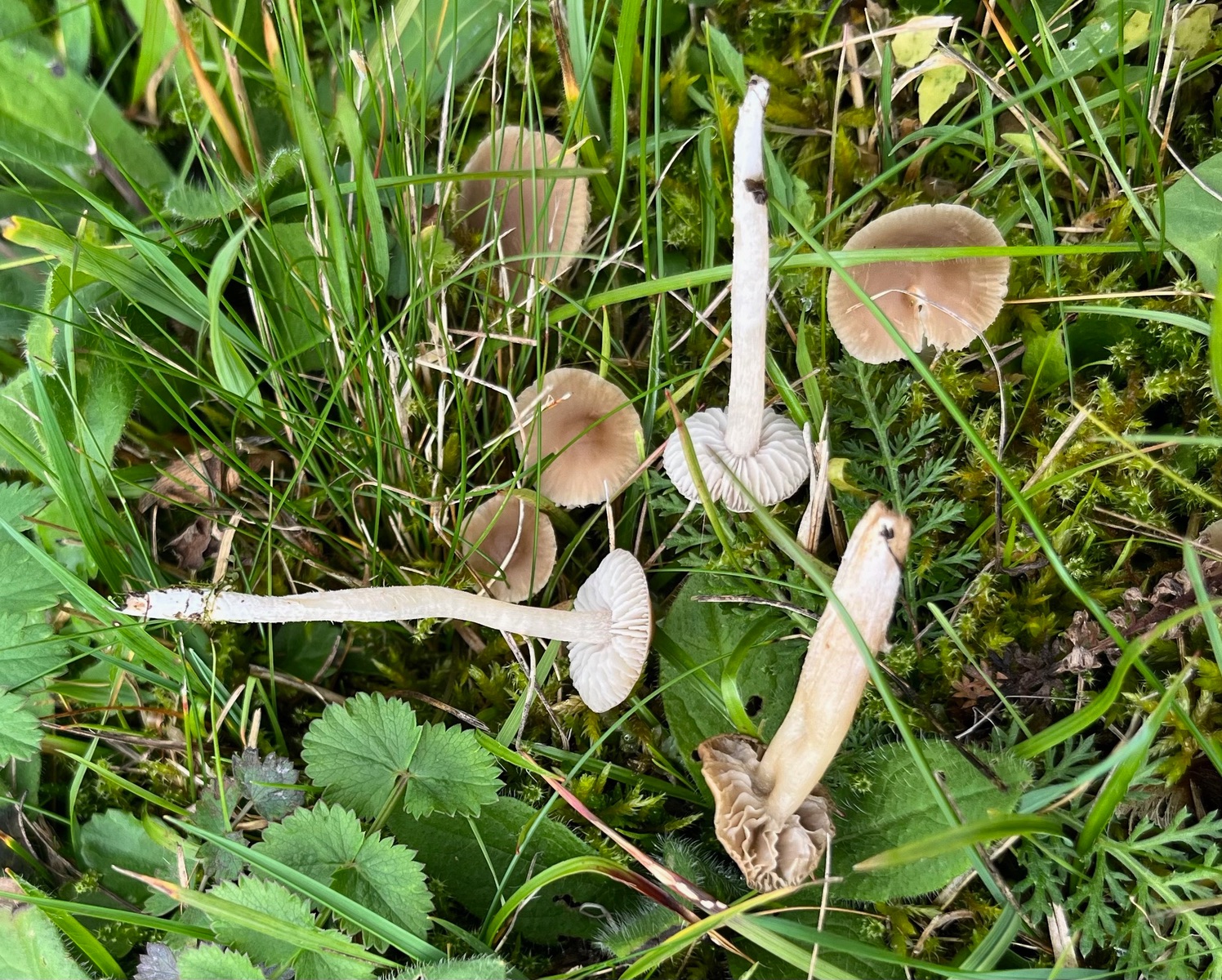 die Wiesenpilze rocken doch noch den Herbst. Zig Saftlingsarten, Keulen, Korallen und alles, was das Herz begehrt. Als Beifang fand ich diese kleinen unscheinbaren Pilze. Sogleich hatte ich die Hoffnung, endlich auch einmal Dermolomas gefunden zu haben. Aber es sieht eher nicht danach aus. Jetzt bin ich einigermaßen ratlos, wo ich nach den kleinen Pilzen mit 1,5-2 cm Hutdurchmesser, dicken gesägten Lamellen ein bisschen nach Mehl riechend und die auf einer sauren Magerwiese standen, suchen soll. Habt Ihr einen Tipp für mich?