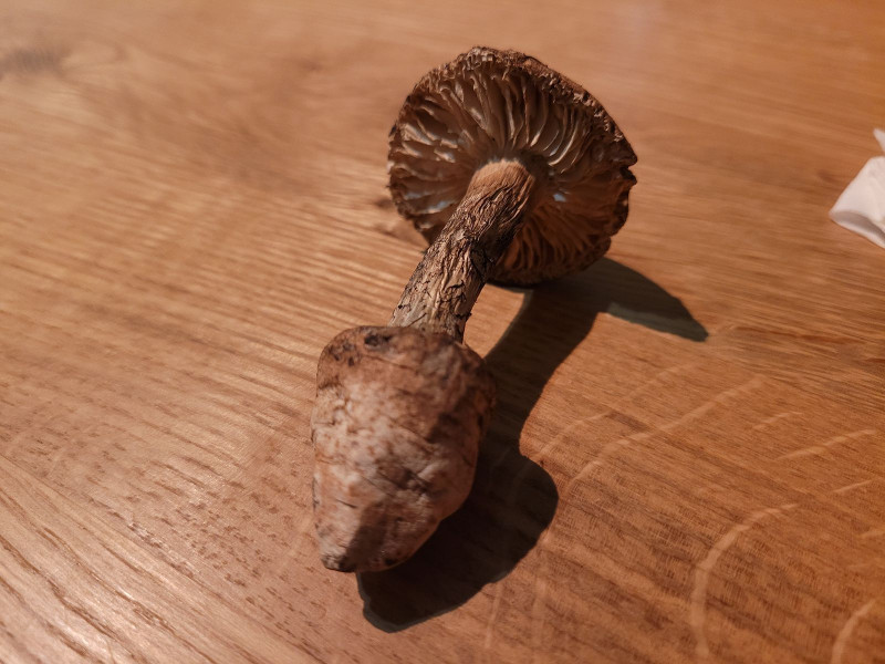Die dicke Knolle, welche man im unteren Teil sieht, ist ein Überbleibsel eines anderen Pilzes (wohl aus der Gattung Amanita). Der Squamanita parasitiert diese Pilzart und bildet dann seinen eigenen Stiel und Hut. Er ist zudem in der Regel an eine ganz bestimmte Pilzart gebunden, was die extreme Seltenheit solcher Pilzarten erklärt. Es handelt sich meiner Meinung nach um eine der interessantesten Pilzgattungen der Welt und ich bin schon auf die mikroskopischen Untersuchungen gespannt.