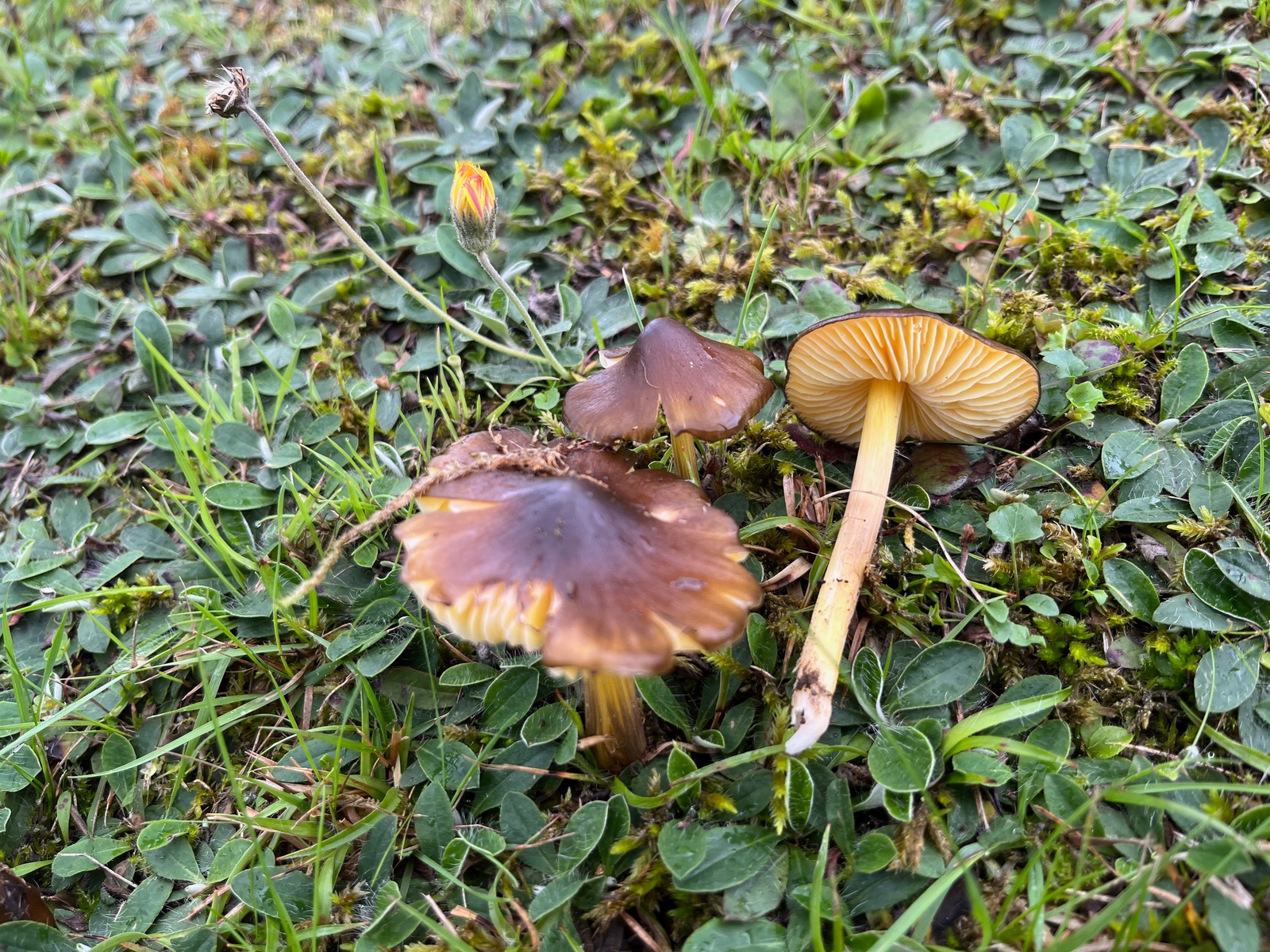 6. ein namenlos gebliebener kleiner, gelber, unauffälliger, nicht glitschiger Saftling. Da gibt es noch Arbeit.