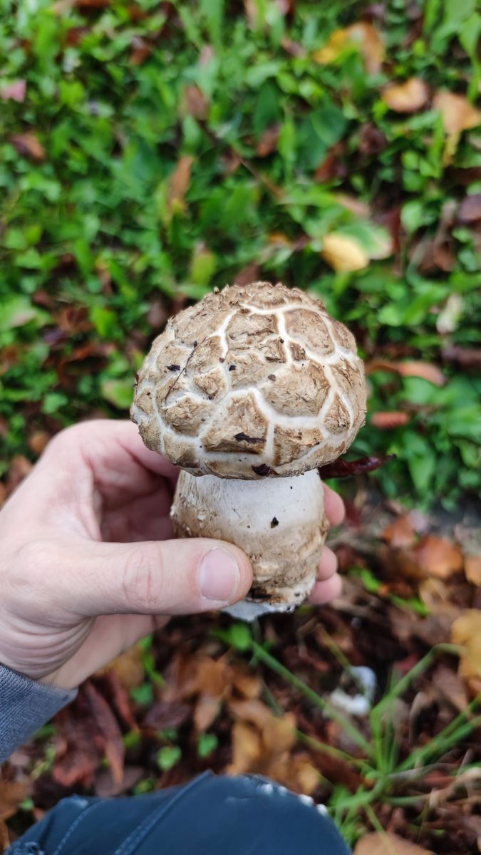 Aber Parkanlage, Wegrand, Laubbäume und die im Verhältnis zur Hand für einen jungen Pilz doch recht ordentliche Größe könnten schon passen. Ich finde den Fransigen Wustling regelmäßig auf dem Friedhof. Der Pilz hat i.d.R. auch keine abgesetzte Knolle, sondern eine eher rübenartige Knolle ohne Scheide, die meist tief im Substrat wurzelt. Auf Deinem ersten Bild sieht es für mich auch so aus, als würde der untere Teil der Knolle fehlen.