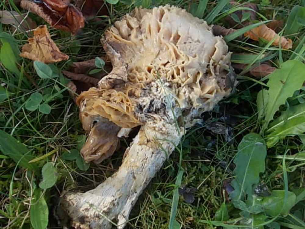 Manchmal wird so ein junger Pilz auch von einem Sammler rausgedreht und dann wieder hingestellt, dann gammelt er auch nur noch vor sich hin