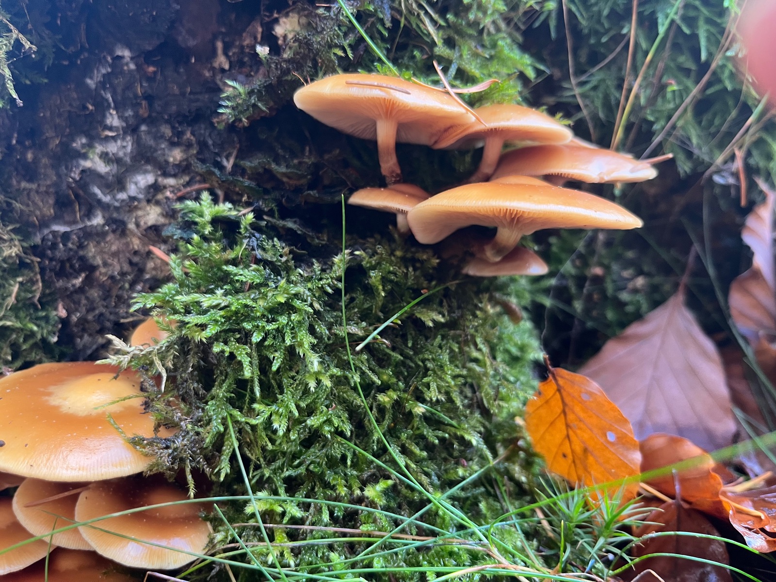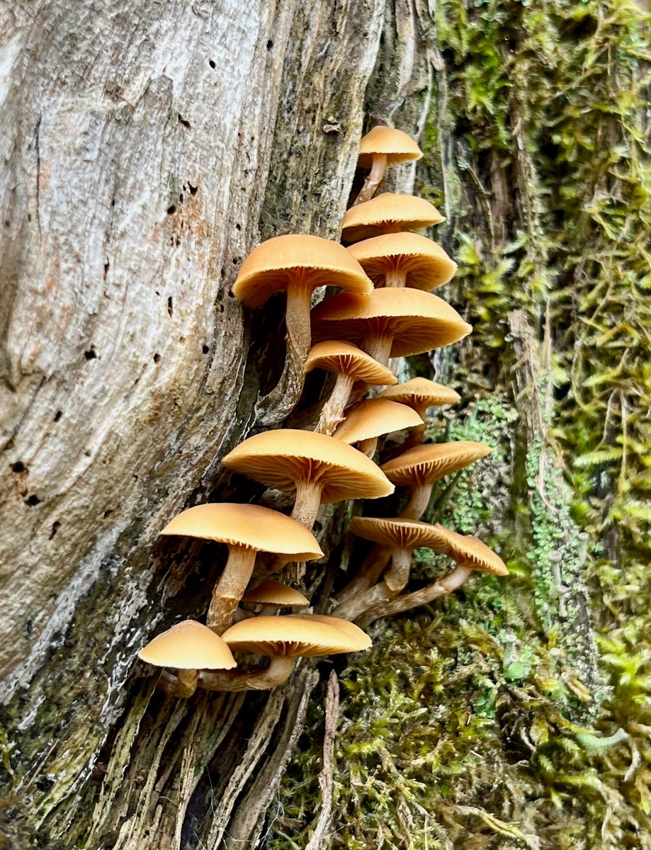 kürzlich begegnete mir ein Büschel Gifthäublinge - Galerina marginata, die ebenso büschelig wuchsen wie Stockschwämmchen. Da ich dies in einer solchen Ausprägung noch nicht beobachtet hatte, wollte ich mich auf eventuelle Vergiftungsfälle vorbereiten und stöberte ein bisschen in "Giftpilze" von René Flammer. Dort steht der Hinweis: dass Gifthäublinge " gesellig, und nicht büschelig wie das Stockschwämmchen" wachsen würden. Da es sich um tödlich giftige Pilze mit enormem Verwechslungspotenzial handelt, zeige ich hier einmal ein Gifthäublingsbüschel.