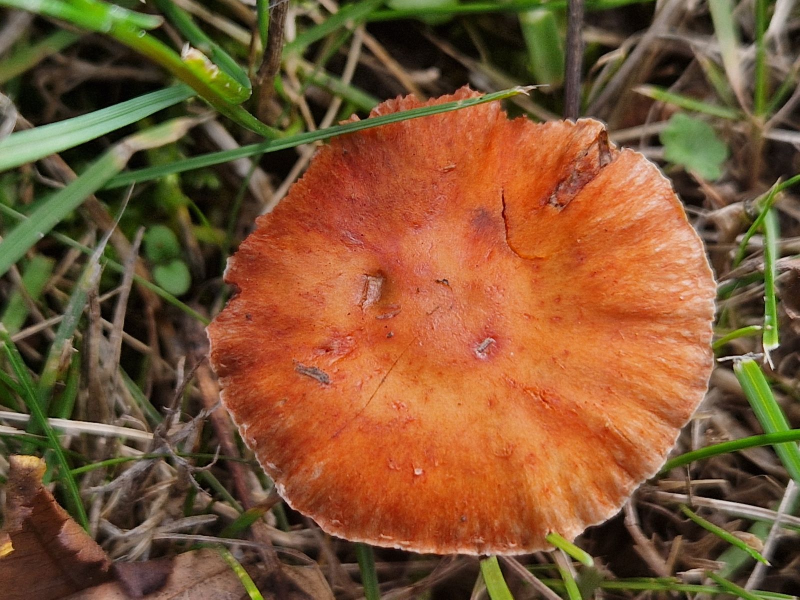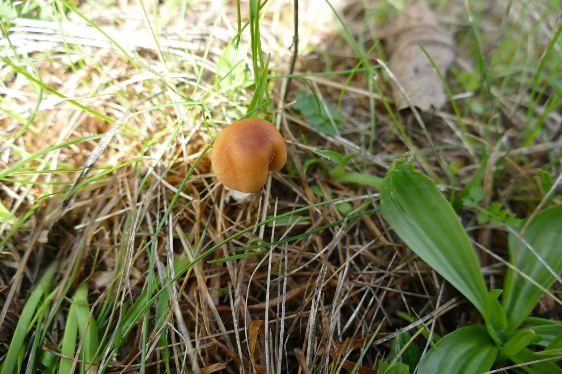 Und dann noch eine unerwartete Überraschung. Auf dem Kinderspielplatz tauchte zwischen dem Gras etwas orangenes, unbekanntes auf (scheint das Jahr der orangenen Seltenheiten zu sein, hatte ja auch schon Pluteus aurantiorugosus dieses Jahr):