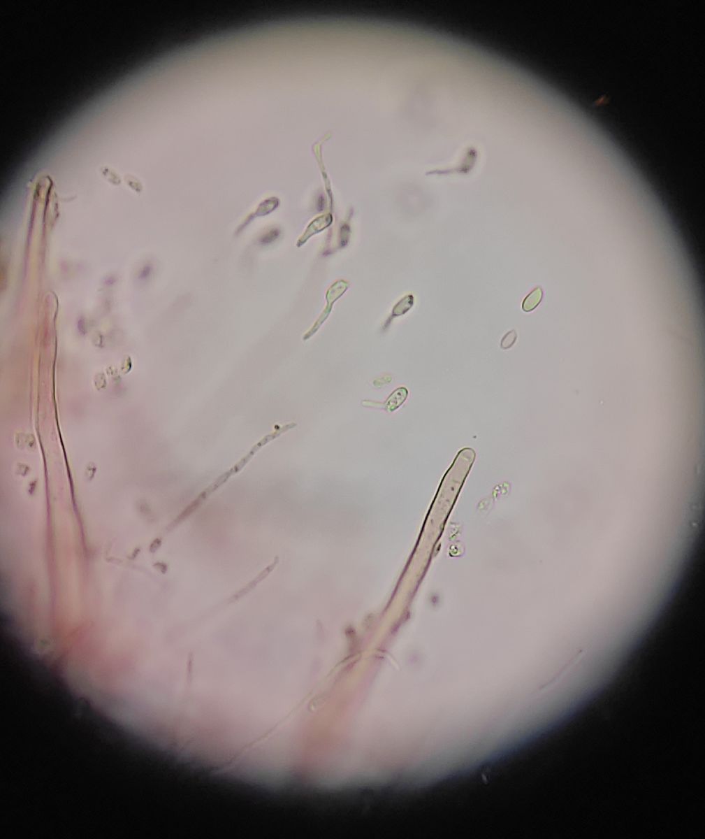 Mikroskopisch passt wohl F. fennae am besten, wobei die halt schon sehr orange sind und nur am Hutrand noch etwas weiß zeigen.