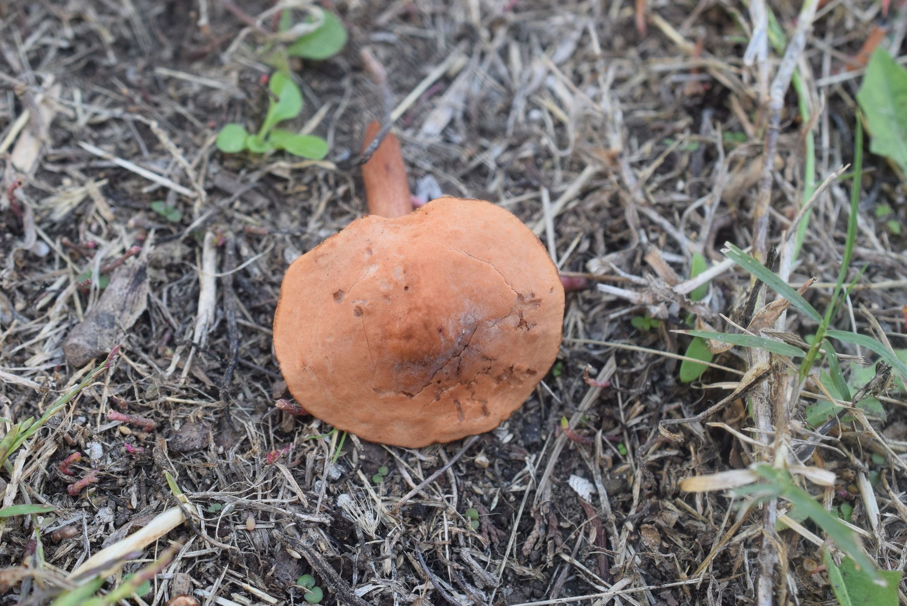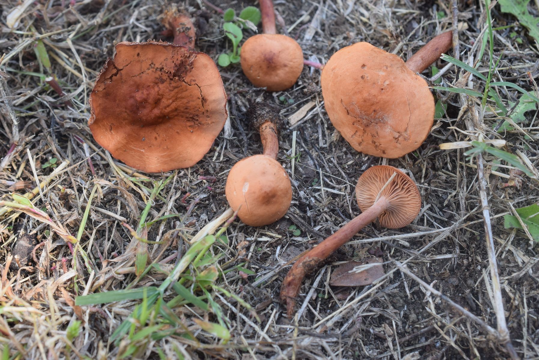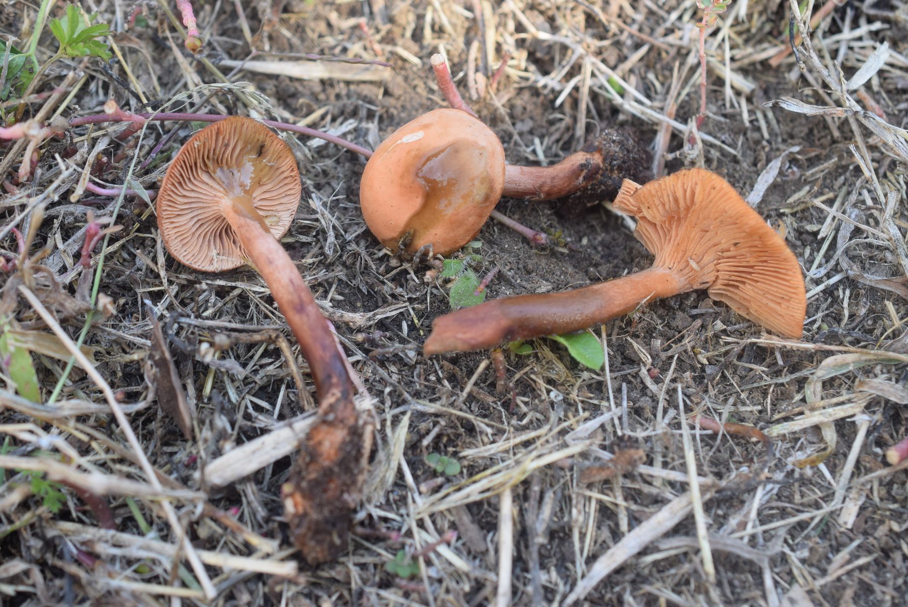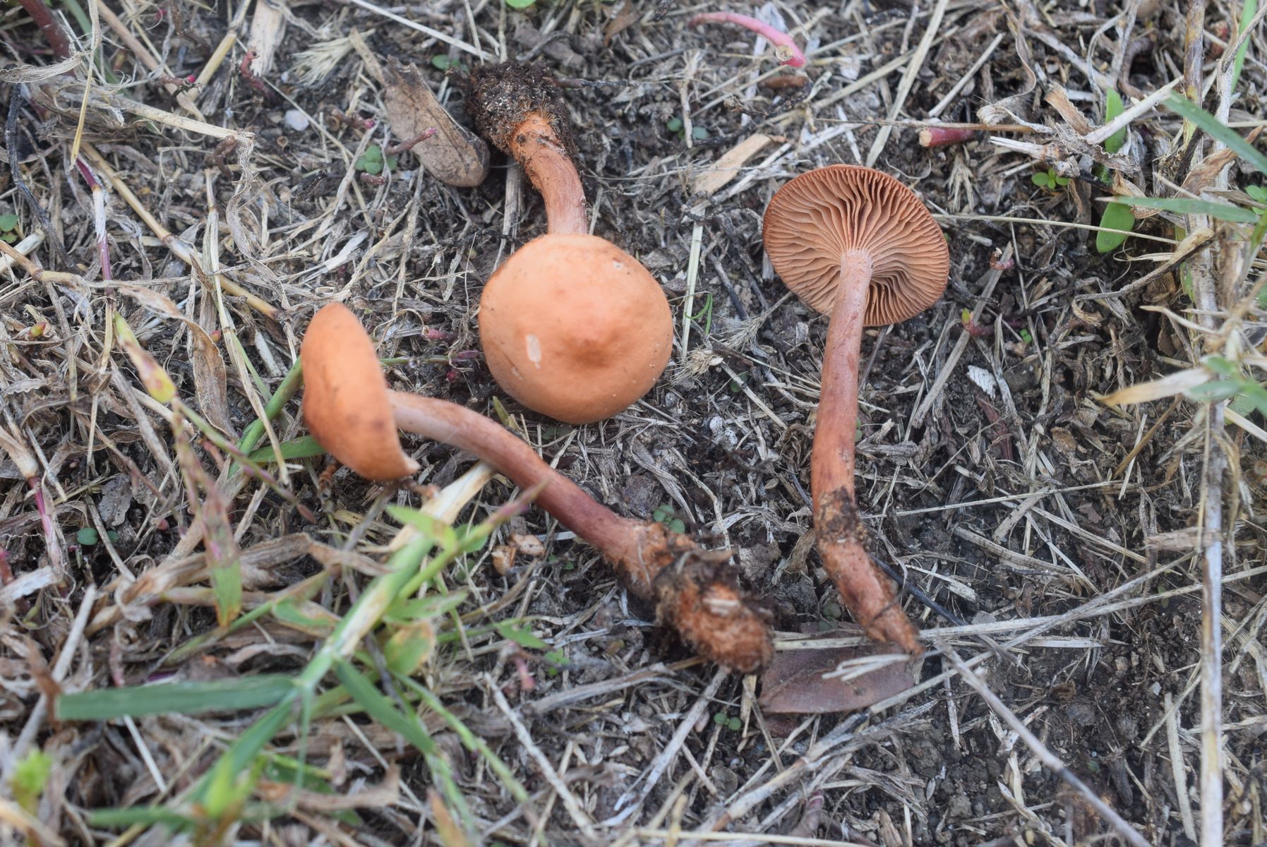 Hab zuerst gedacht das um irgendwelche kleine Lactarius gehet aber kein Milch . Man kann a Tubaria wegen volle Stielfleisch ausschließen . Keine Ahnung Pilz . Leider kein Sporenabdruck .