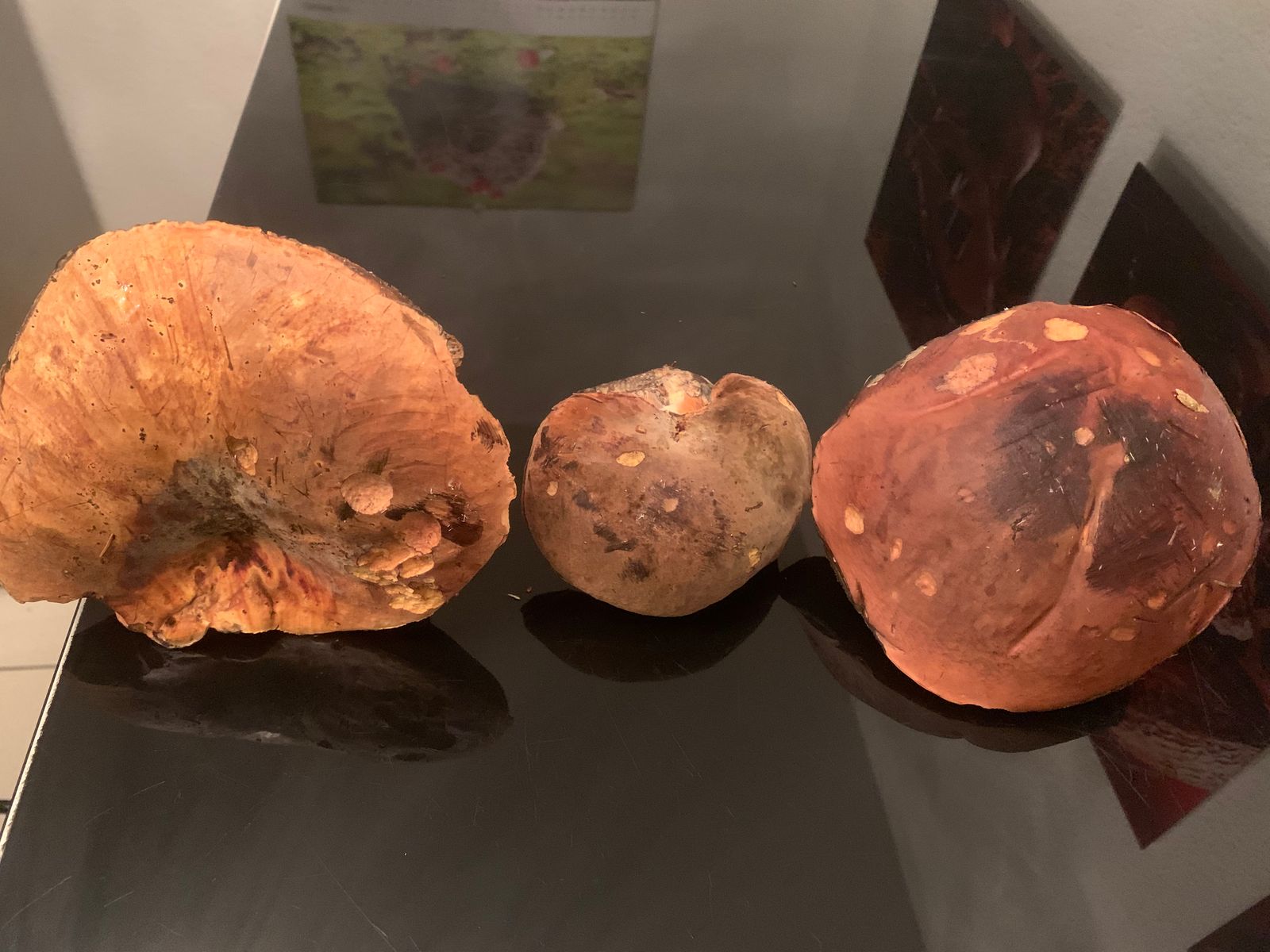 Alle drei Pilze waren in der Nähe von Buchen.