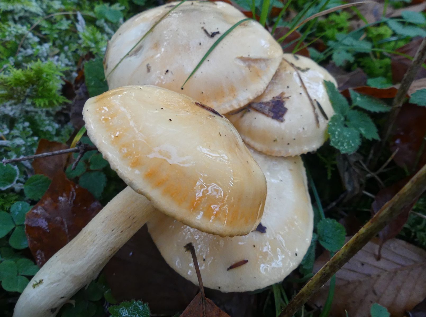 Bei den älteren Pilzen war die gelb-orange-Färbung nicht mehr so ausgeprägt