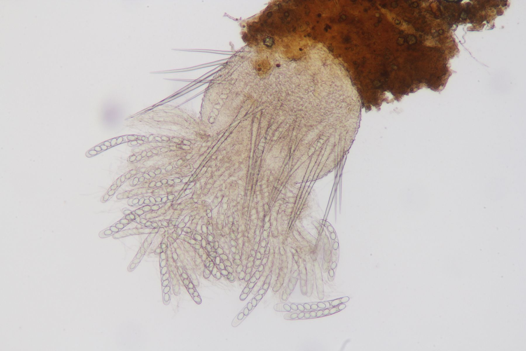 Auch wenn ein paar zusätzlich Maße (zB Haare, Ascus) hilfreich gewesen wären, sehe ich hier ebenfalls Lasiobolus intermedius.