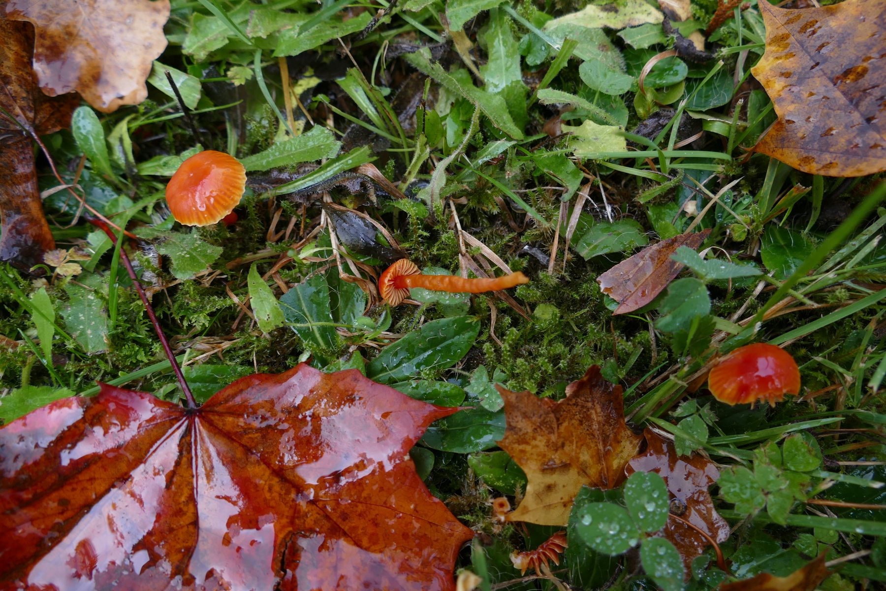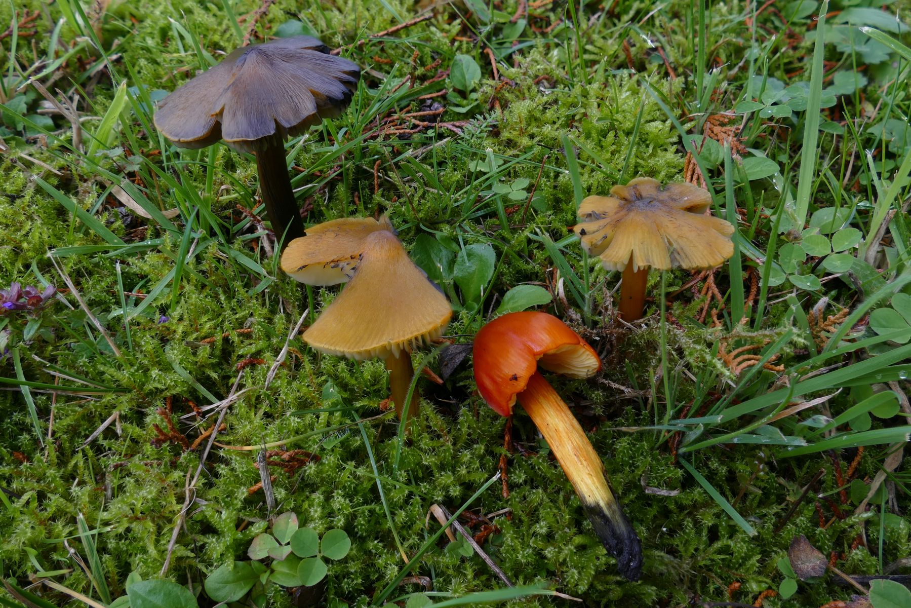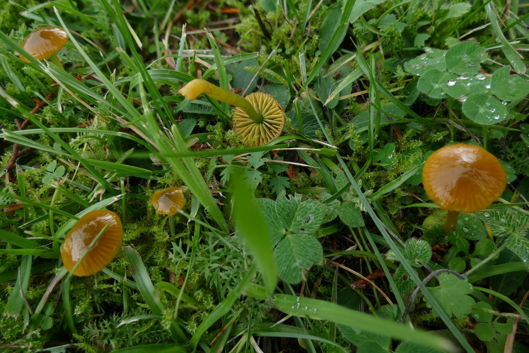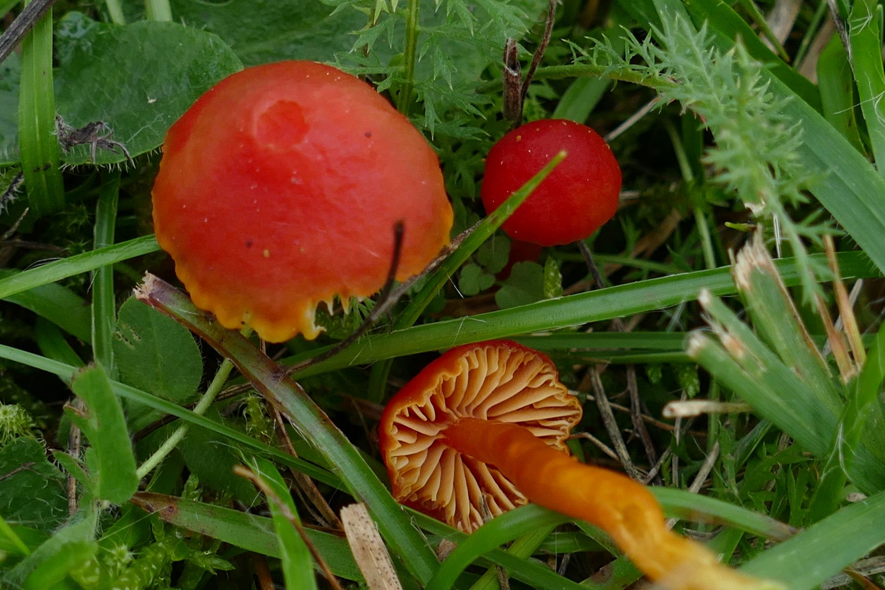 kam nun zu den dort gezeigten Arten (Hycgrocybe conica, mucronella, acutoconica und Giophorus psittacinus) einiges an Wiesenpilzen hinzu auf dieser Wiese. Es geht also voran: