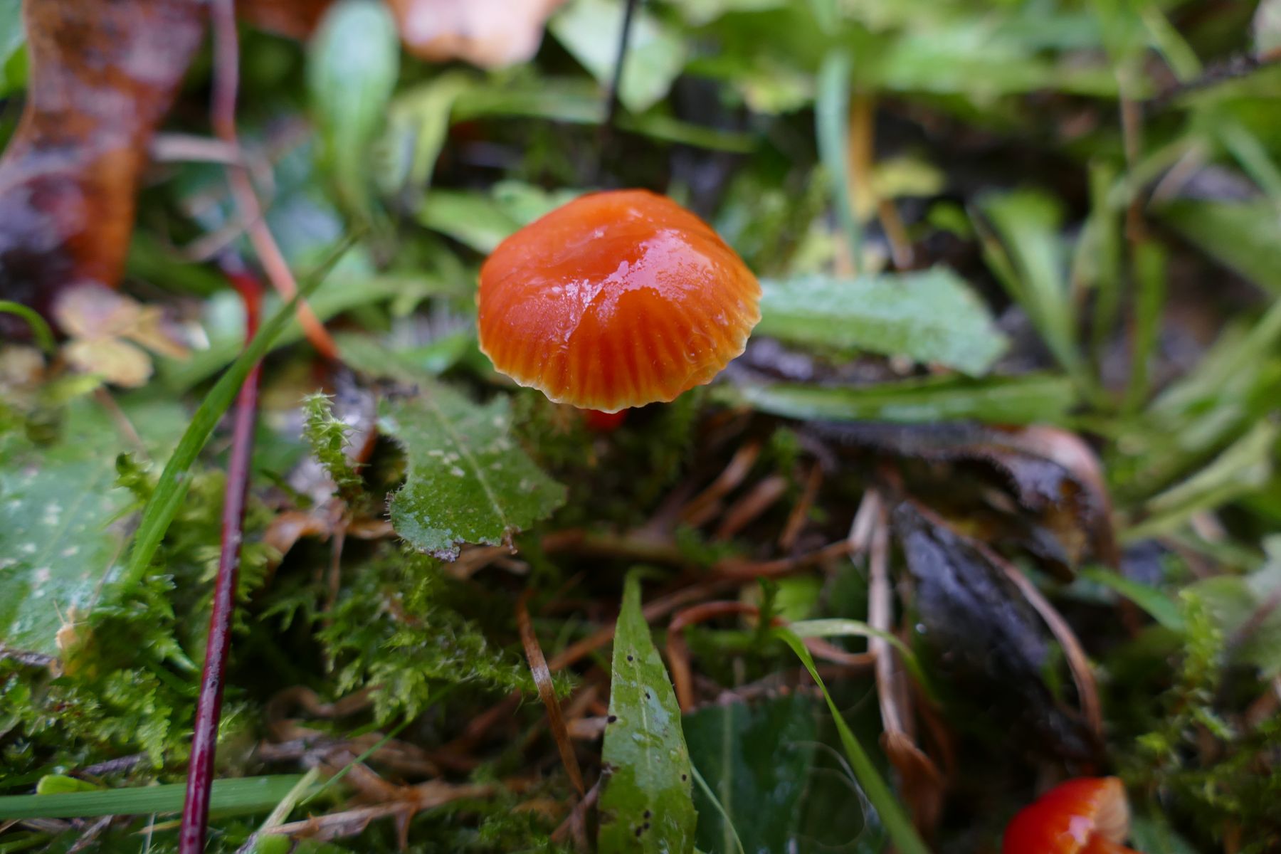 Endlich auch 03 Hygrocybe coccinea - der kirschrote Saftling, wenn auch nicht in großen Mengen: