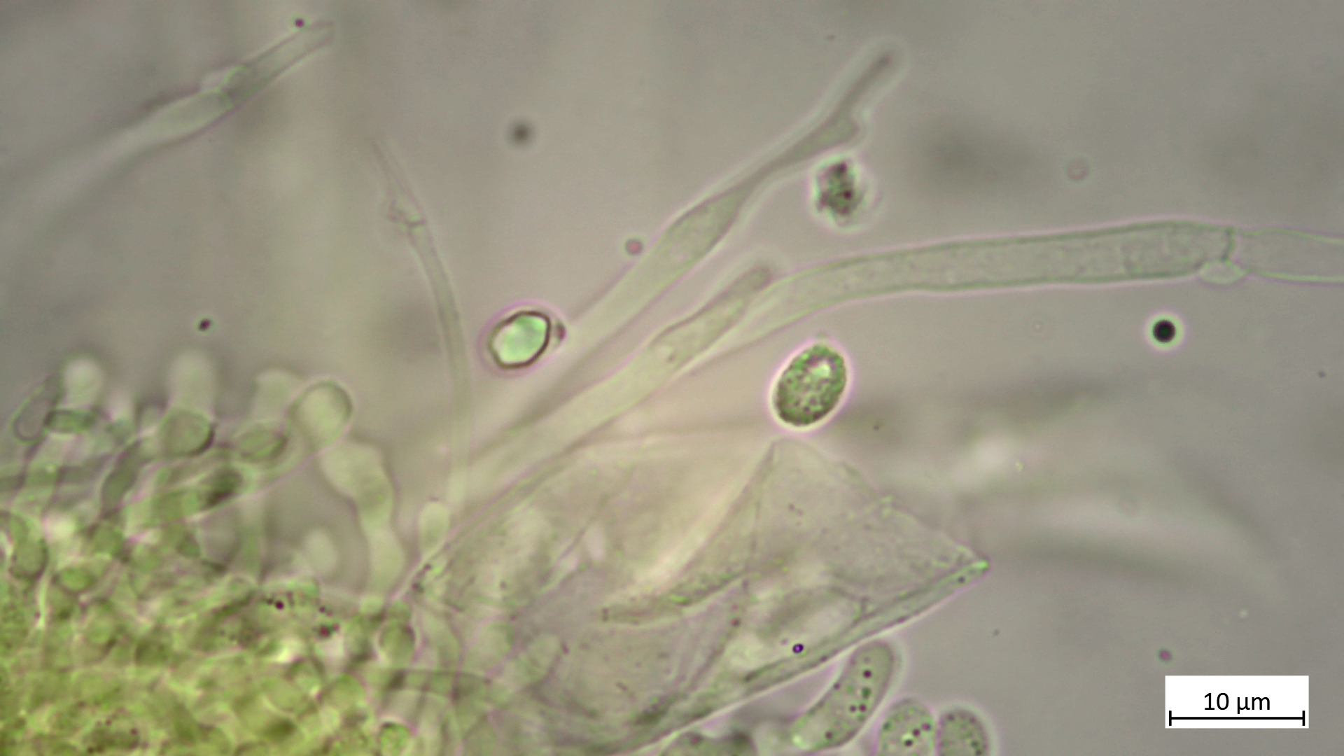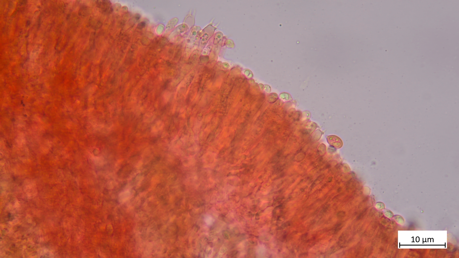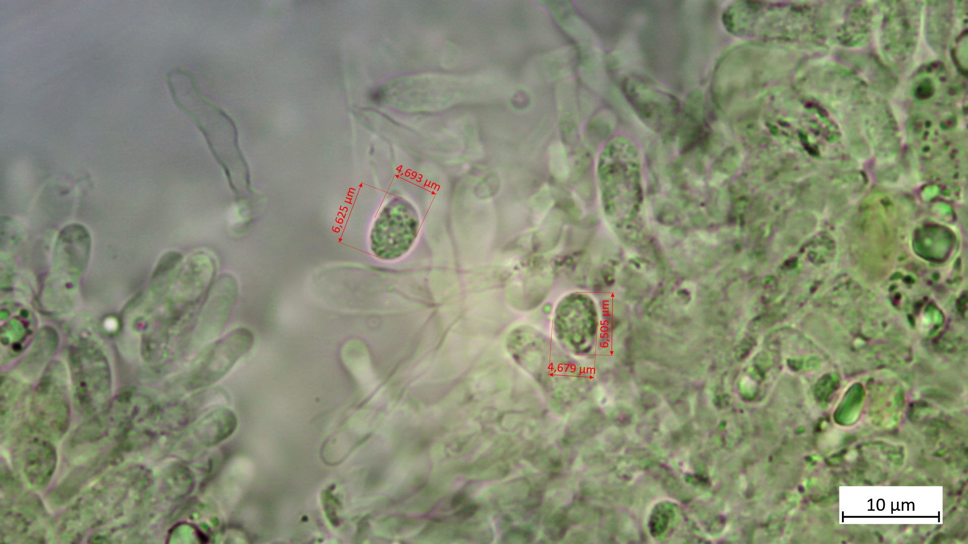 bist Du bei C. luteoalba wirklich sicher? Makroskopisch fehlt mir da der aprikosenfarbene Ton und ich würde eher an C. laeticolor denken. Je nachdem wie die Sporen liegen ist der lange Apiculus manchmal schlecht zu sehen.