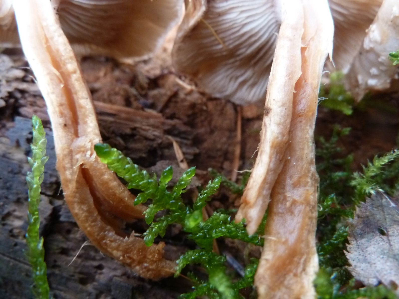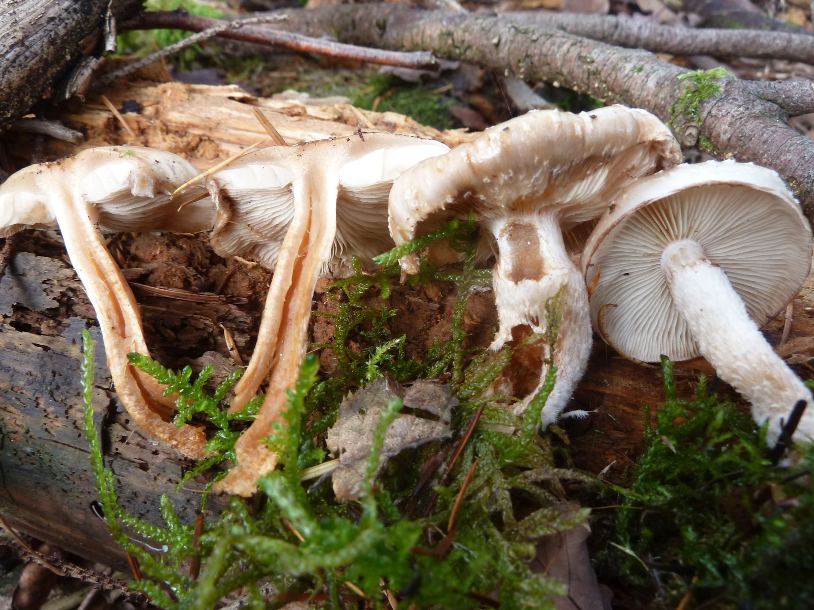 gestern war ich zwischen Herborn und Dillenburg auf basischem Basaltboden unterwegs. An der Grenzlinie zwischen Buchen und einem kleinen Nadelwaldstück (Douglasie, Lärche und Fichte) habe ich auf stark zersetztem Nadelholz diese mutmaßlichen Träuschlinge gefunden. Nordhanglage, ca. 350 Meter über NN.