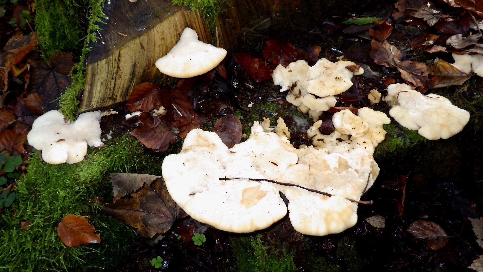 9. Ein weiterer Schleimpilz, aber welcher? Oder ganz was Anderes? Weiss auf Totholz, feucht und weich
