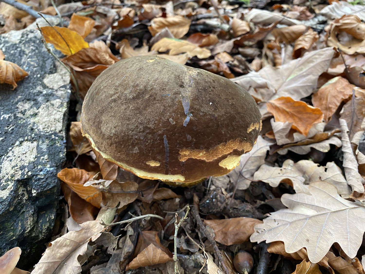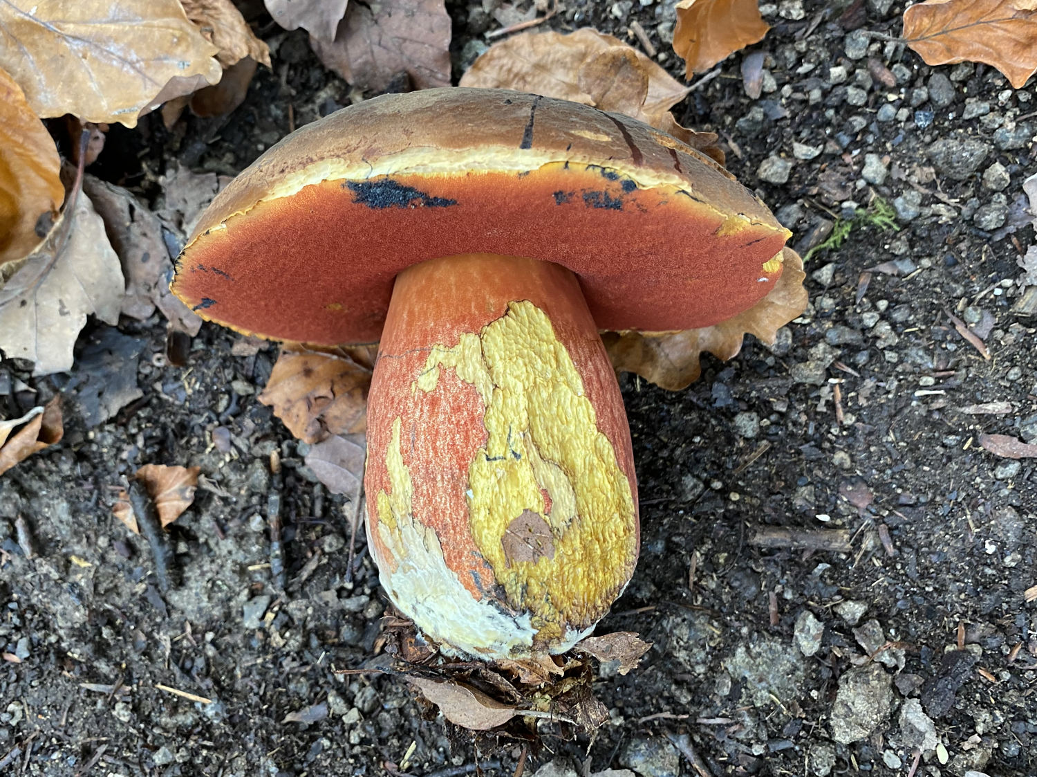 schau mal nach dem Flockenstieligen Hexenröhrling,