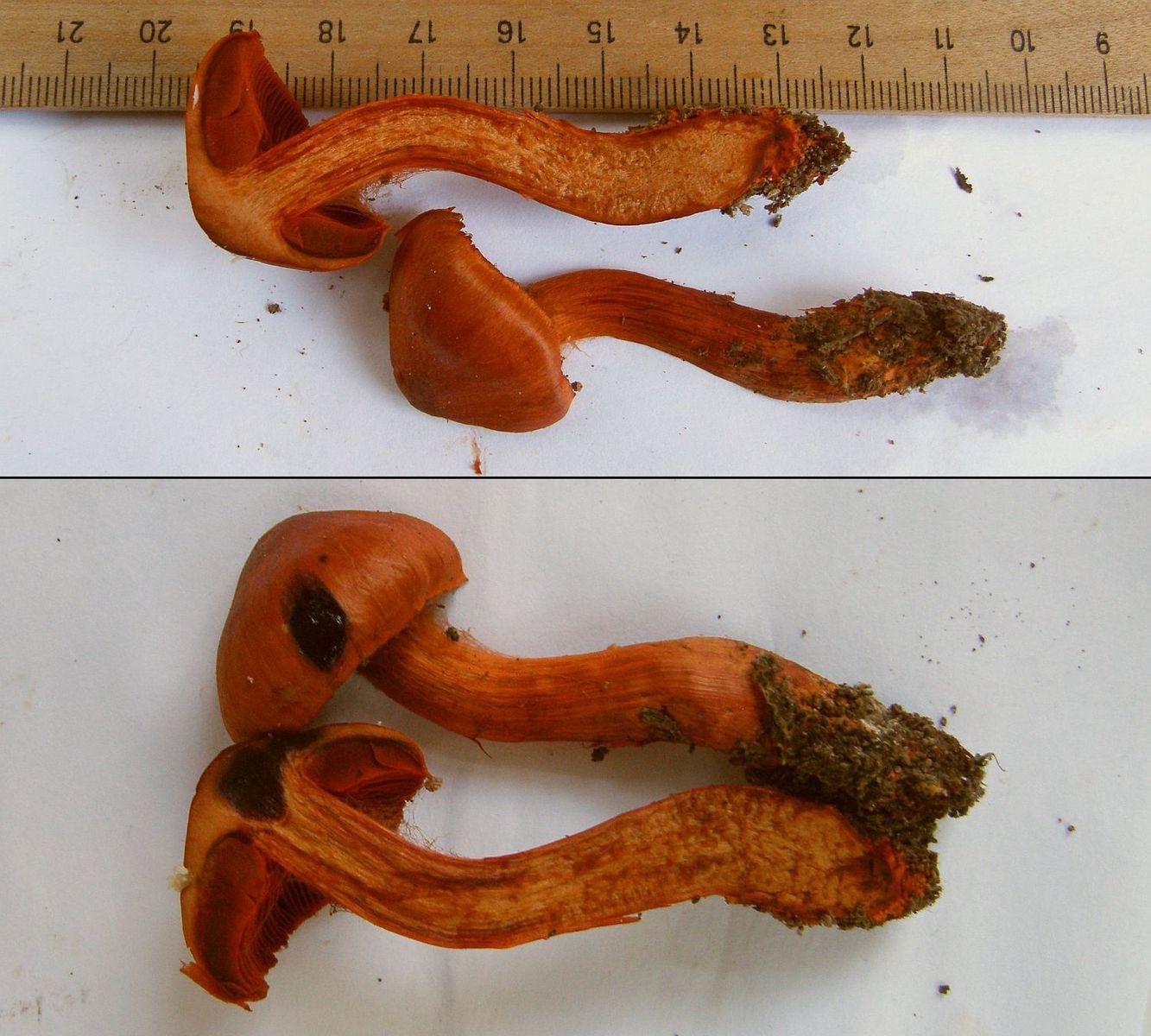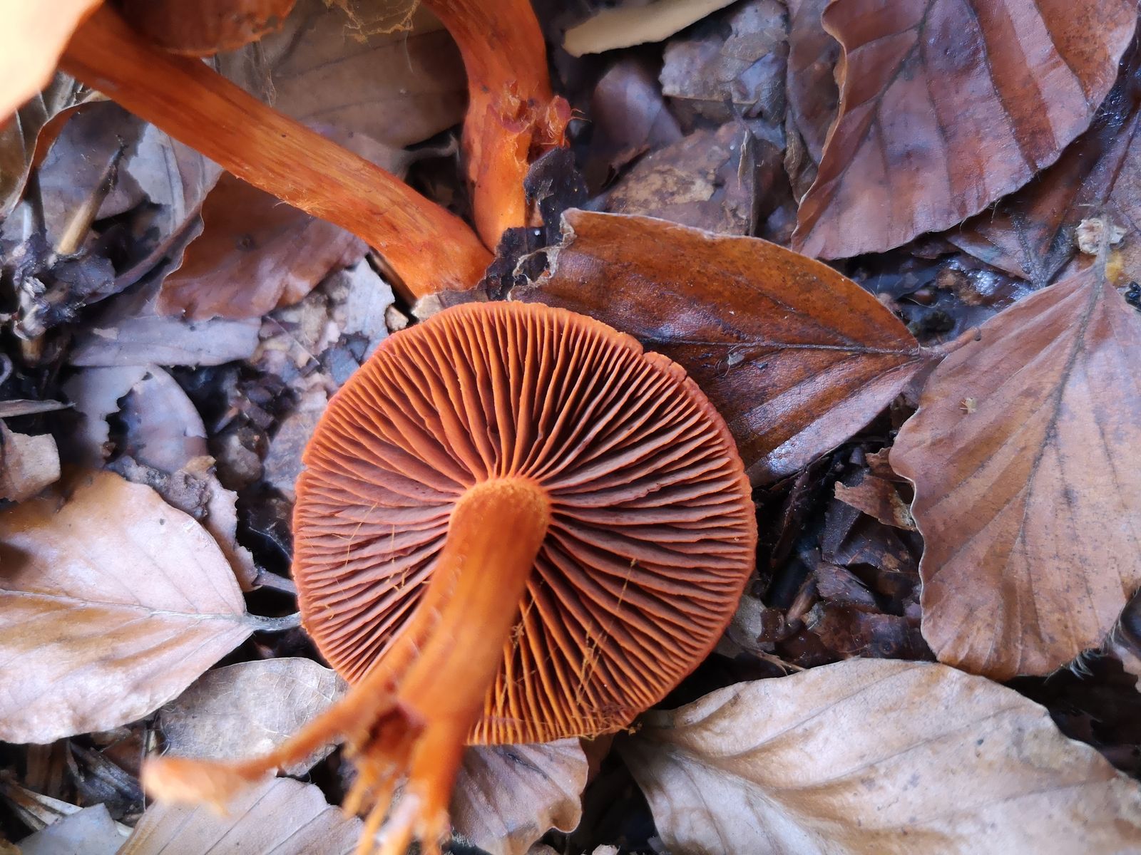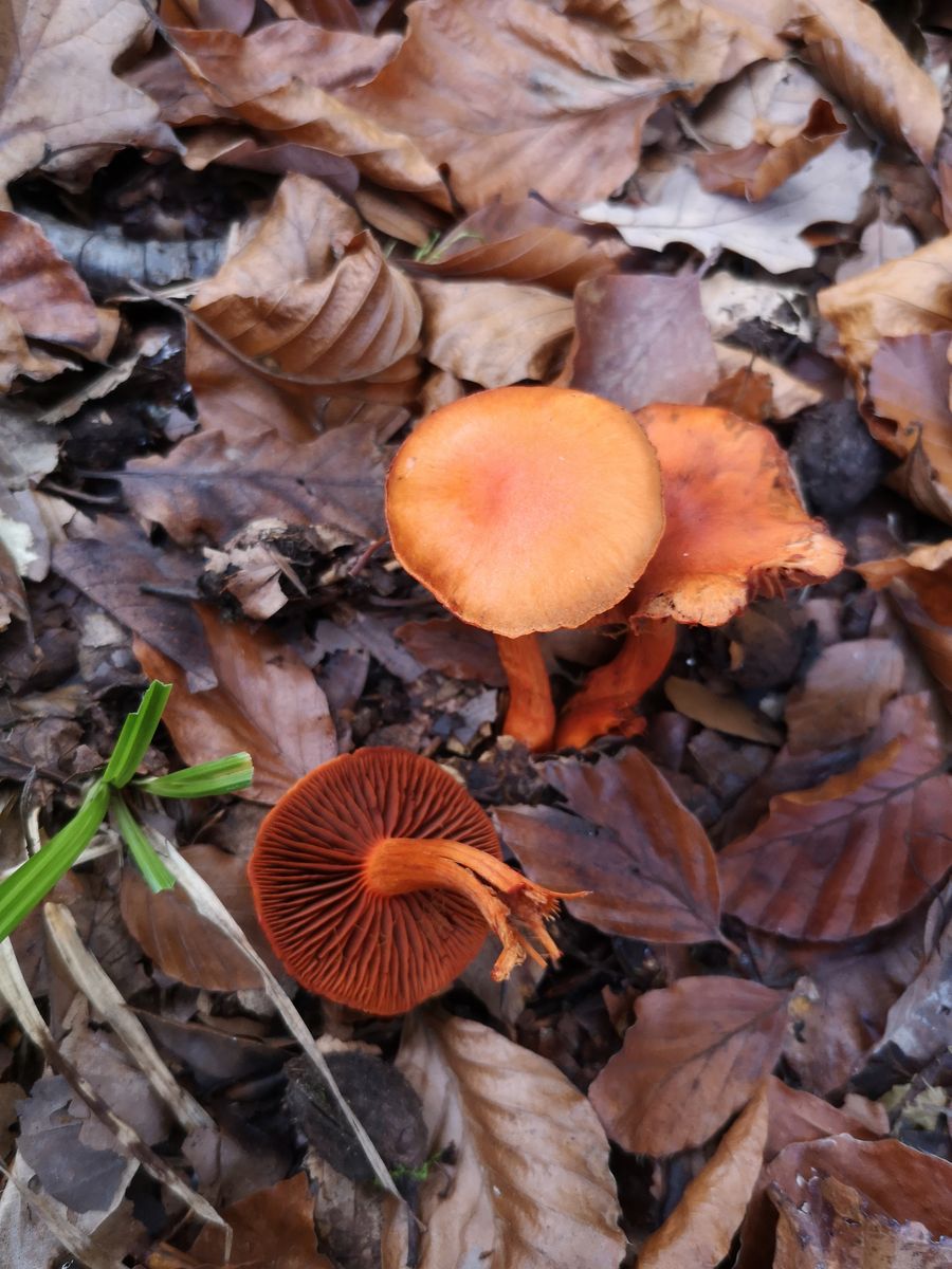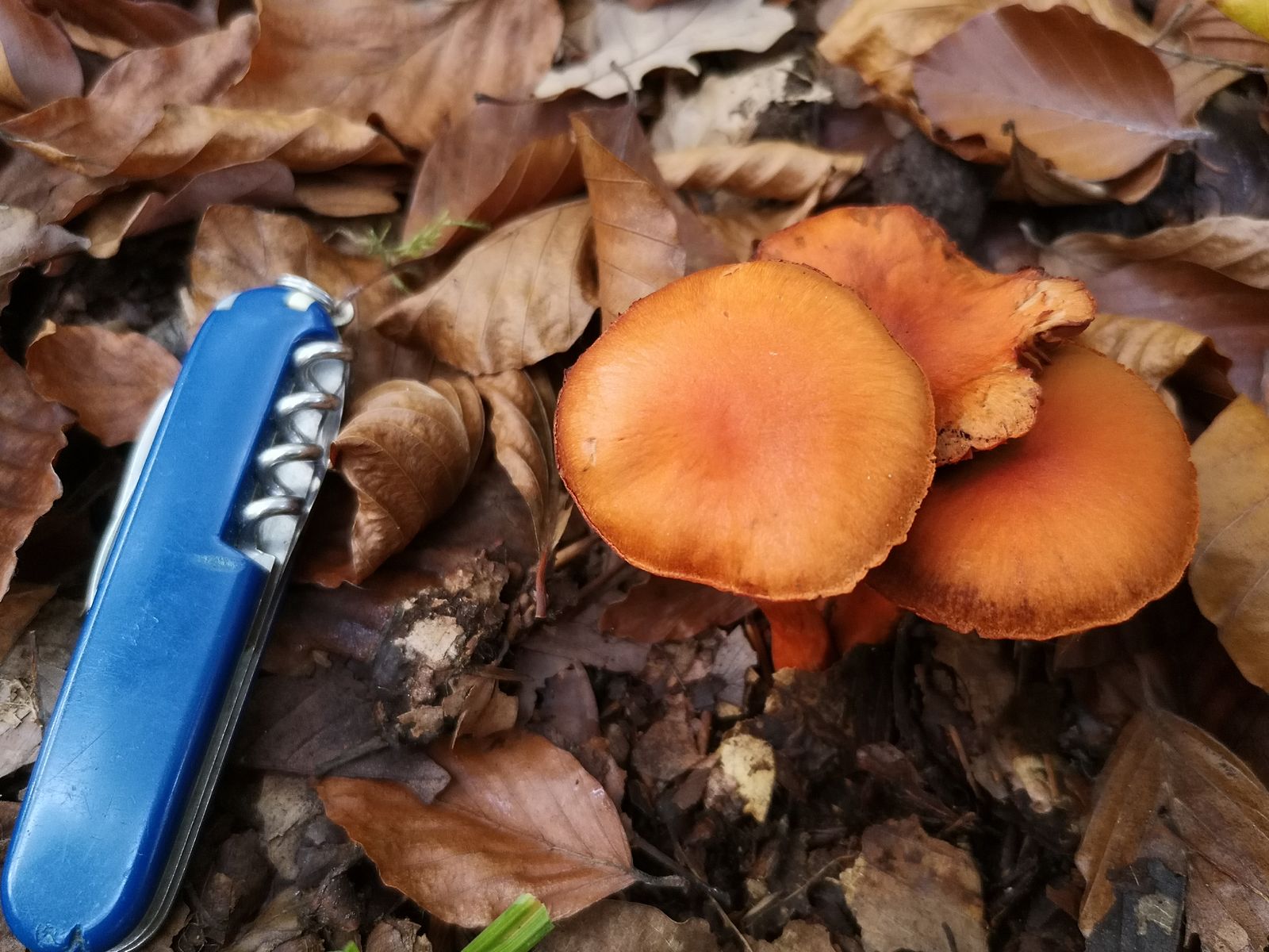 ich habe heute im Buchen/Eichenwald auf dem Boden (nicht sauer) diese leuchtend orangen Pilze gefunden. Ich wäre bei C. orellanus - wenn der Stiel nicht hohl wäre.