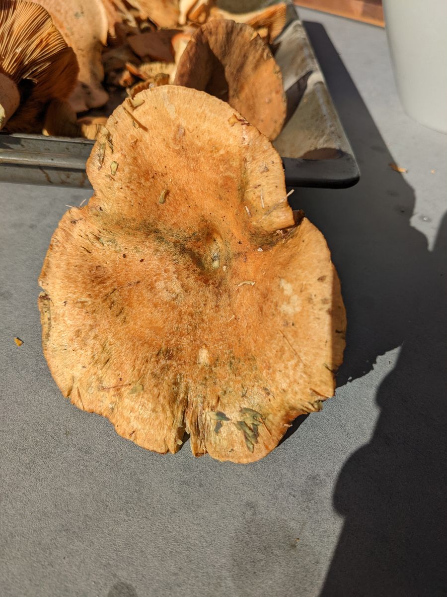 Hier bin ich ziemlich sicher. Die Stelle kennen wir mittlerweile gut, die Pilze milchen orange und die Farbe verändert sich auch nach längerer Zeit fast nicht. Deutliche Grübchen und der Fundort immer direkt bei Kiefern passen ebenfalls.