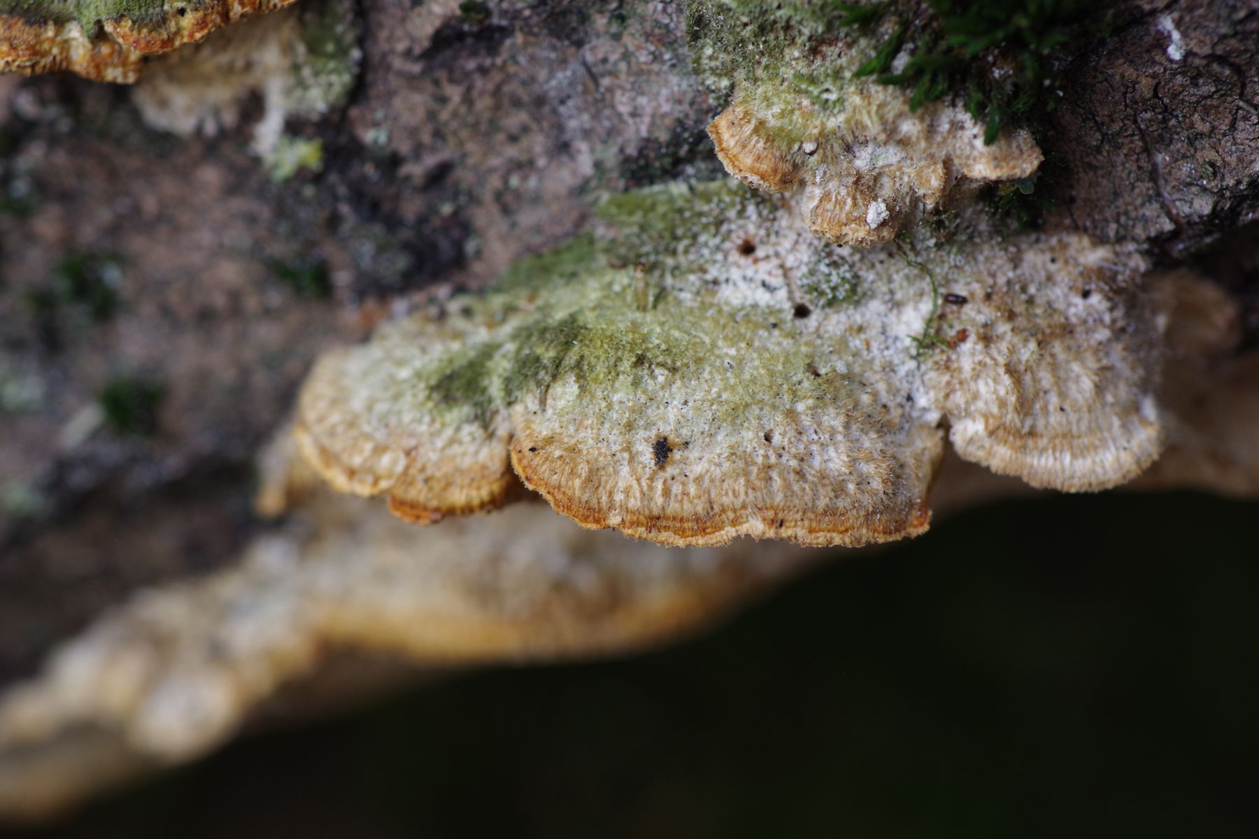 4) der war leider sehr hoch und nur im Gegenlicht zu fotografieren, aber nach Kontrastverbesserung spricht wohl nichts gegen Xylobolus frustulatus, an unberindetem Eichenast