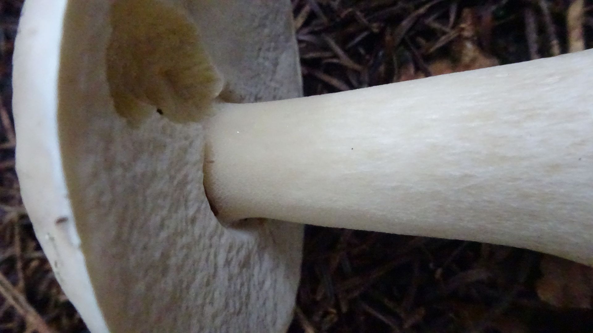 Im selben Wald: Für mich ein Steinpilz in weiß, ohne Netz. Dachte ich zuerst. Ganz oben zwischen Hut und Stiel aber minimalst
