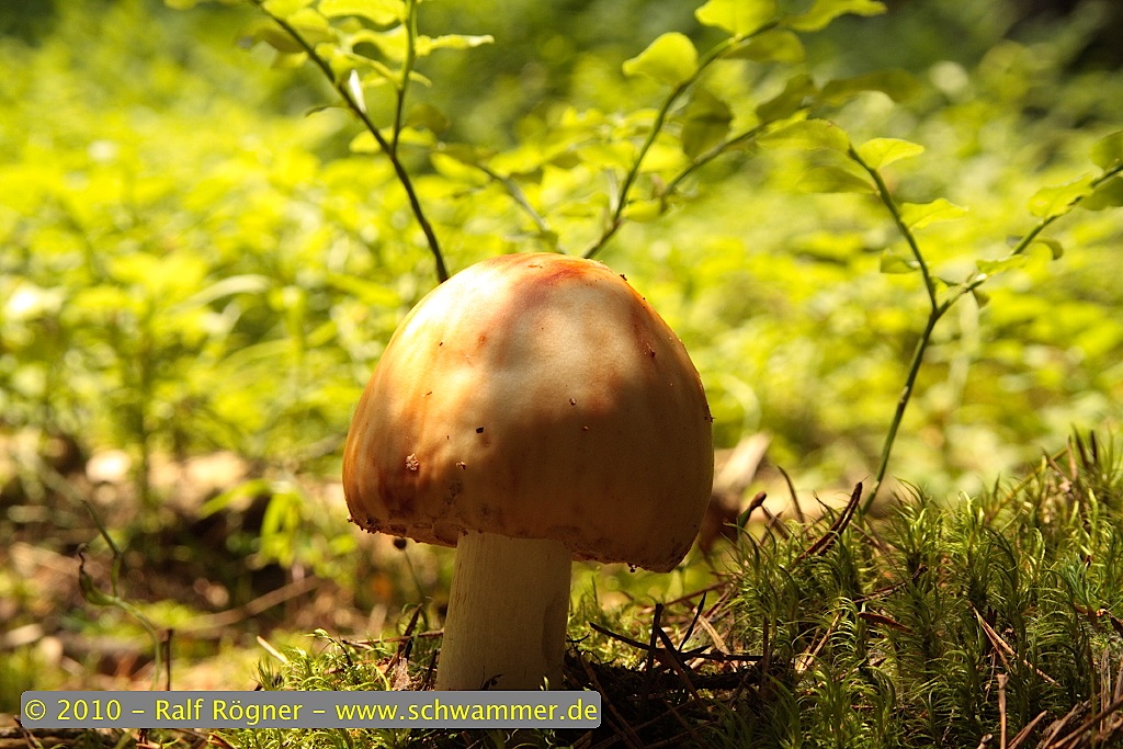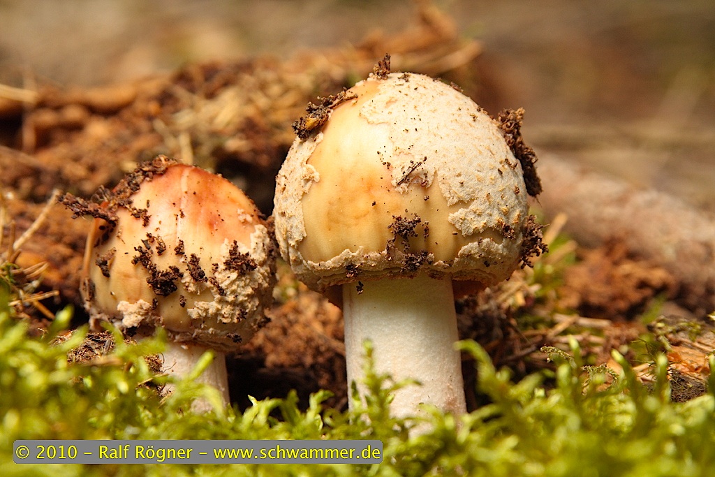 Gleich zu Beginn unserer Tour fand ich die zwei Perlpilze, ganz junge Exemplare, die sich scheinbar von der viel zu trockenen Witterung nicht beeindrucken lassen wollten: