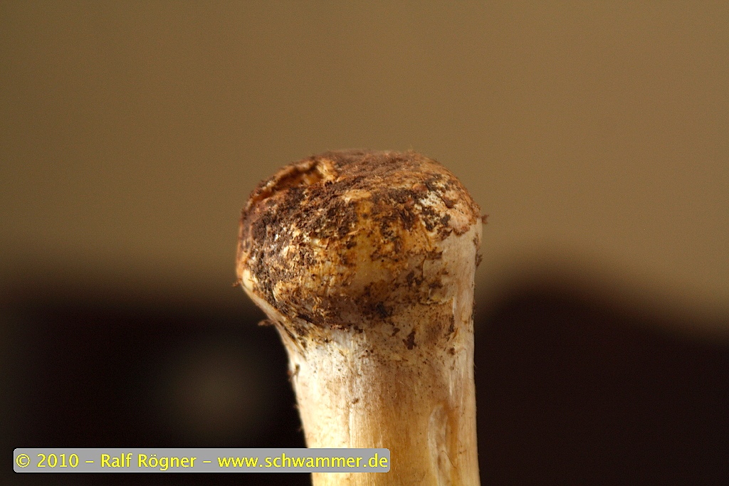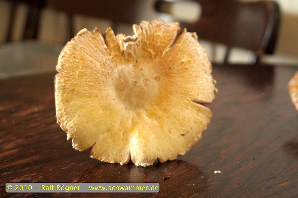 Das kuriose an diesem Pilz ist sein Geruch: beim Reinigen der Knolle nahm ich einen mandelartigen Geruch wahr, an den Lamellen riecht er hingegen leicht nach Lakritze - so meine Frau. Ich bin mir da nicht so ganz sicher...