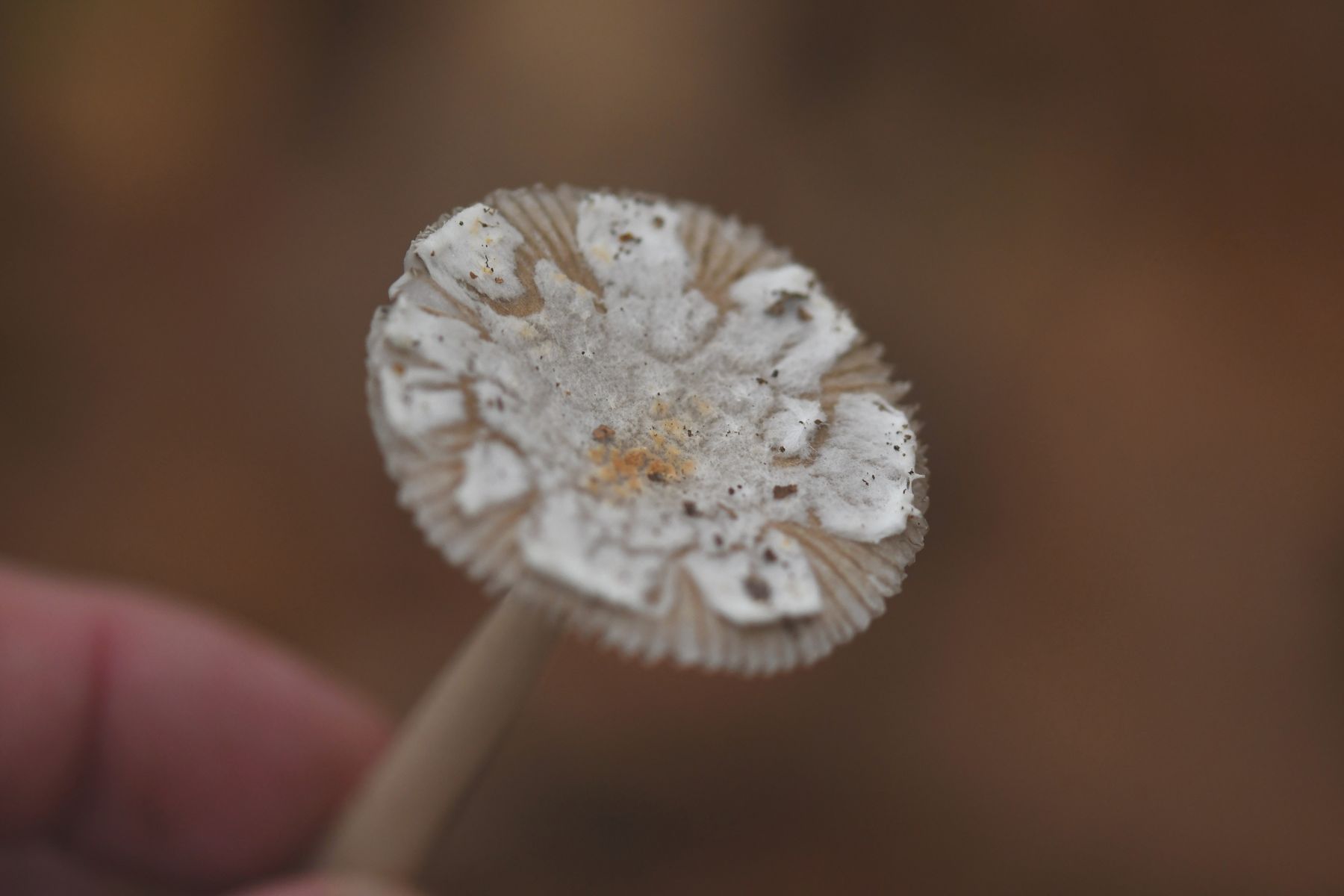 ich sehe da eher auch einen Weißsporer. Eine Psathyrellaceae schließe ich aus.