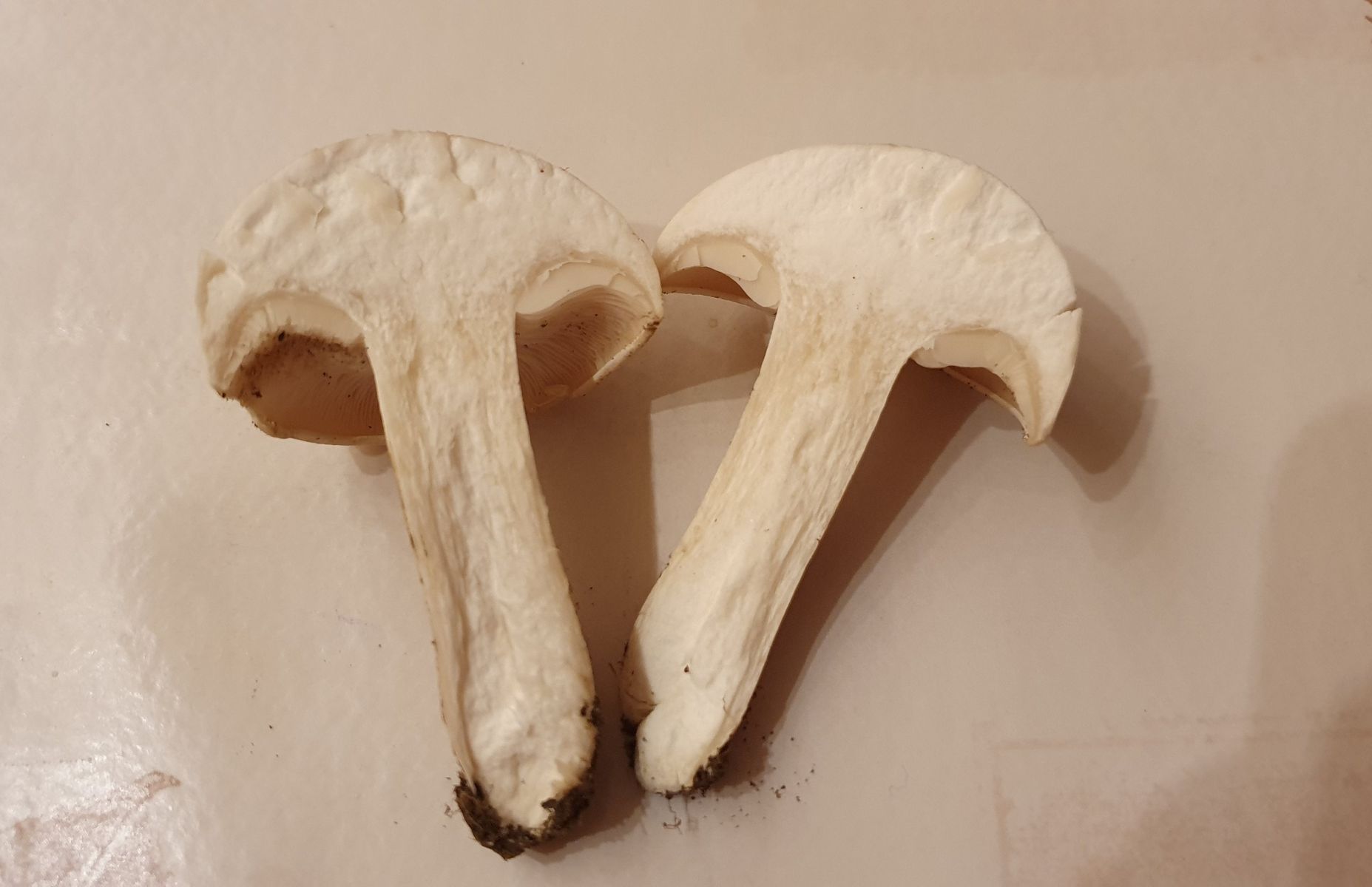 • Tricholomella sagte mir bis jetzt nichts. Was mich bei den vermeintlichen Maipilzen oben sicher macht, ist das Schnittbild. Von deiner genannten Gattung habe ich keine Schnittbilder gefunden. Das könnte für noch mehr Aufklärung sorgen wenn du oder jemand anderes was passendes findet.