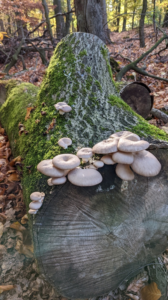 Ich hätte den dunkler erwartet und dachte auch, dass es für sein Erscheinen zunächst etwas Kälte benötigt, aber da gibt es ja auch noch den Sommer-Austernseitling.