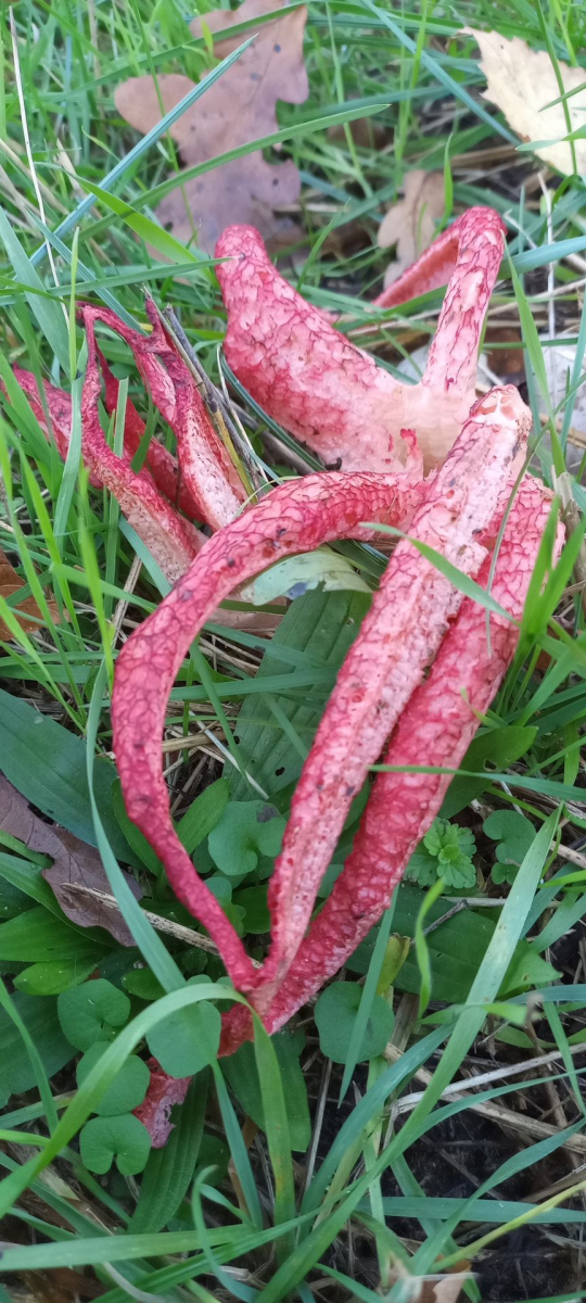 ich fand heute erstmalig den Tintenfisch-Pilz (Clathrus archeri) am Wegesrand. Netter Weise in verschiedenen Altersstadien.