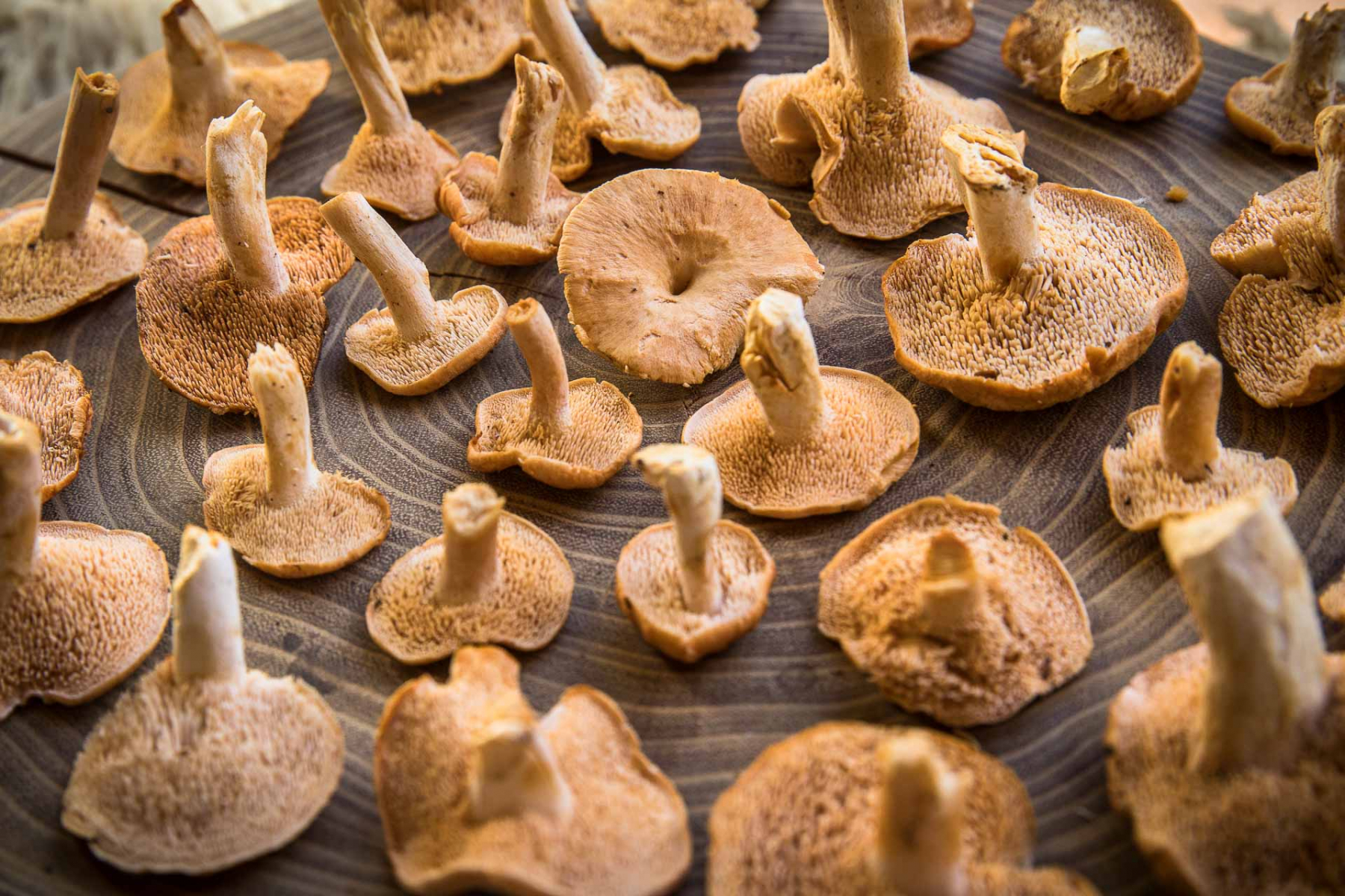 Ich hab in letzter Zeit ziemlich viele dieser Semmelstoppelpilze gefunden. Ursprünglich dachte ich an Hydnum rufescens aber die Nabelung bei den meisten Exemplaren verunsichert mich etwas. Ich hab jetzt leider nur diese Aufnahmen aber bei mindestens der Hälfte der Exemplare ist diese Nabelung so deutlich wie bei dem einen. Die eher akademische Frage ist also ob z.B. auch H. rufescens "genabelt" sein kann? Gibt es da noch andere makroskopische Unterscheidungsmerkmale zum genabelten Semmelstoppelpilz H. umbilicatum? (Fundort Österreich).