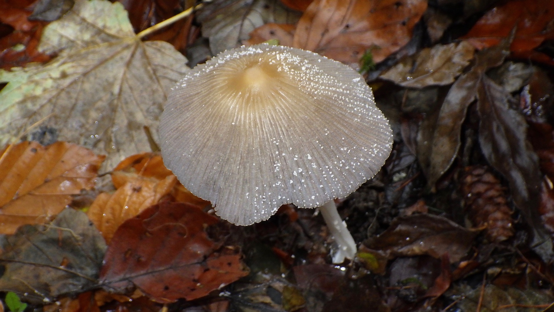 2) Am Waldwegrand ein einzelner Tintling mit wenigen Schuppen/Flocken am Hut und auch an der Stielbasis, kann es ein Gemeiner Scheibchentintling oder ein Graublättriger Tintling sein?