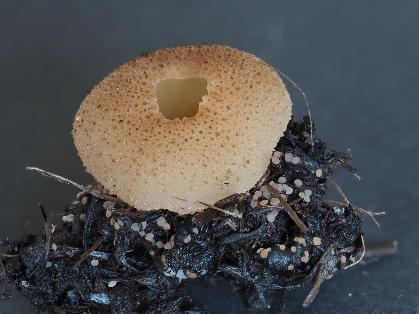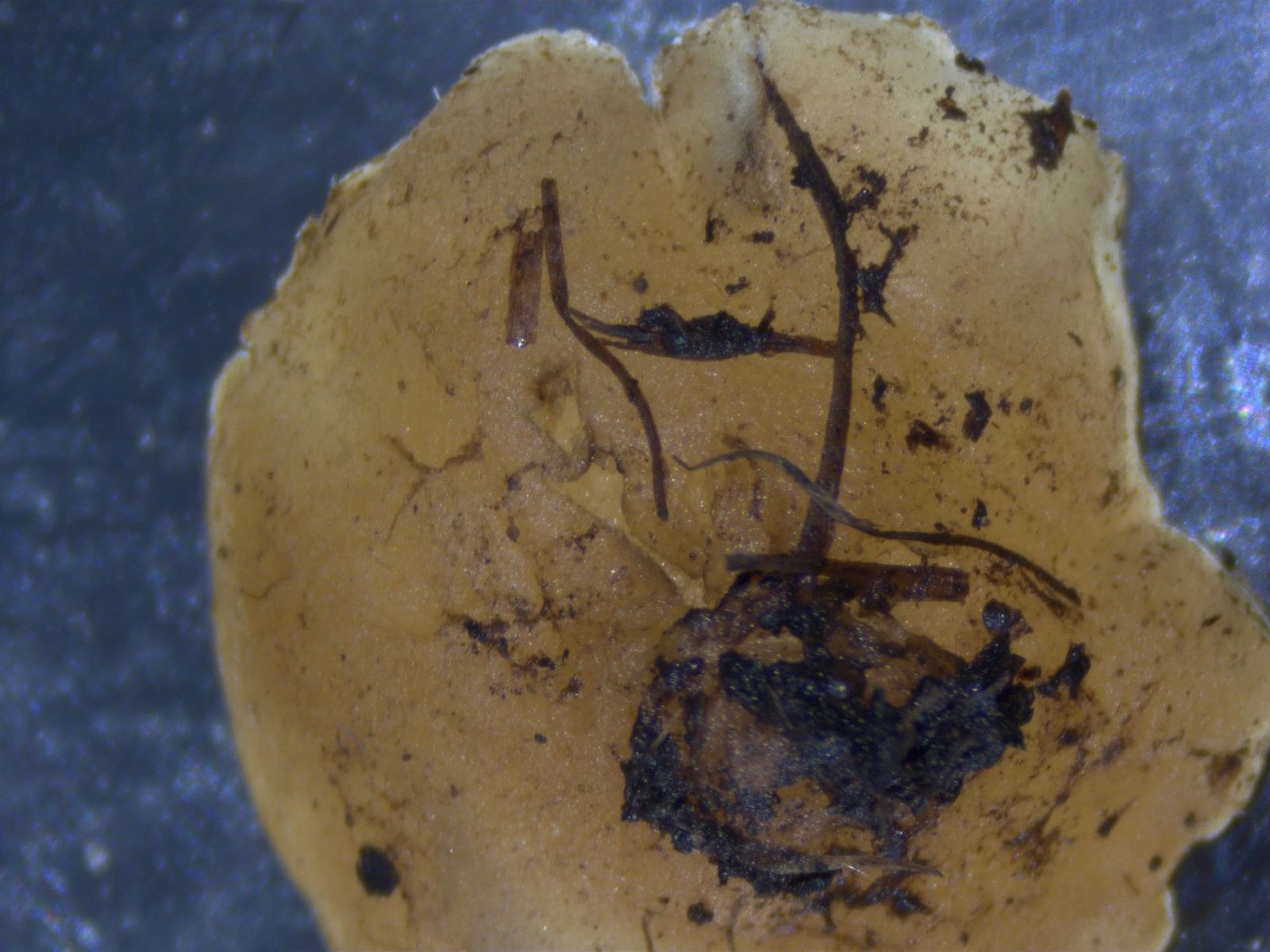 Im Pflanzbeet eines Freundes gedeiht eine Peziza, die ich nicht eindeutig bestimmen kann. Die mikroskopische Untersuchung spricht für P. vesiculosa, doch sieht diese meines Erachtens komplett anders aus.